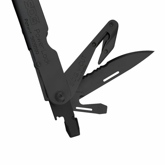 SOG Powerlock Stainless Steel Folding V Cutter 18 Tool Multi Tool Pliers, Black