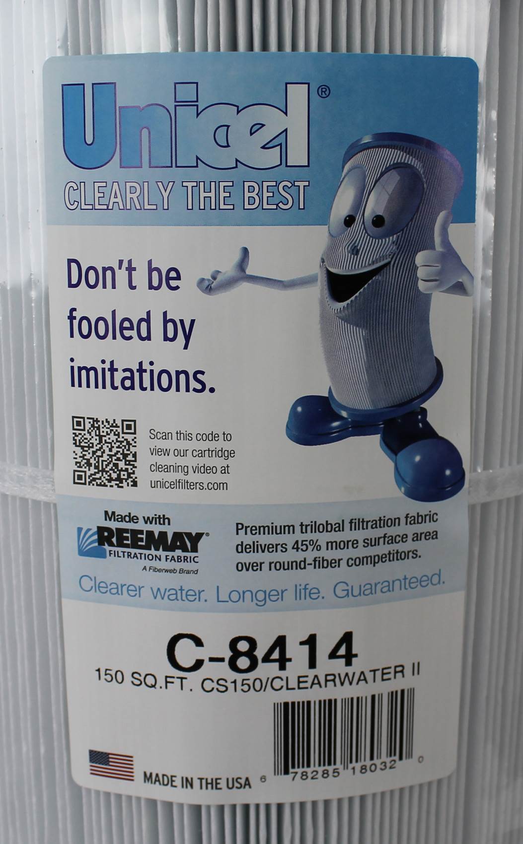 The **Unicel** Swimming Pool Filter is made from heavy duty polyester and is designed to last far longer than cheaper alternatives, while having more pleats to improve filtering capacity. *Unicel* filters are made in the USA for the highest possible quality, allowing you to buy with confidence.