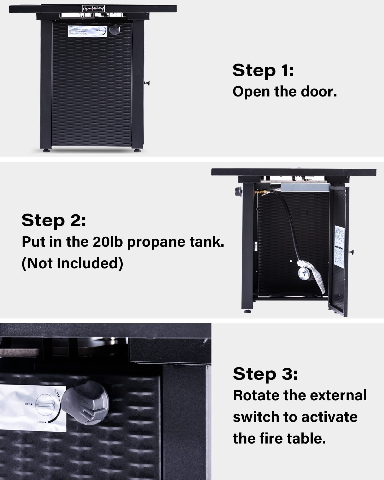 This 28-inch square wicker propane fire pit table from Legacy Heating is a stylish and functional addition to any outdoor space. With a 50,000 BTU output, it provides ample warmth and ambiance for your patio, deck, or backyard. Featuring a rust-proof design, lava rocks, and an ETL certification for safety, this fire pit table is perfect for entertaining guests or enjoying cozy evenings with family.