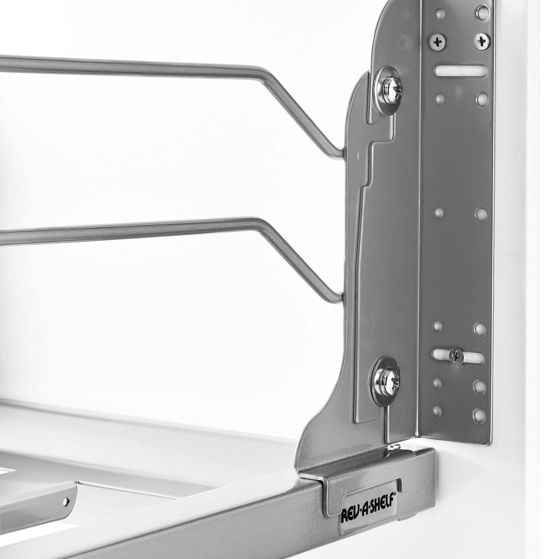Upgrade your kitchen and get your trash off the floor and hidden in a cabinet with these Rev-A-Shelf double pullout trash containers.