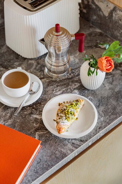 Designed by architectural visionary Michele de Lucchi, the Pulcina Espresso Coffee Maker encapsulates a small but substantial design innovation that stops dispensing the drink at the right time before the coffee gets a bitter aftertaste. This helps to enhance the full and rich aroma of your espresso. The spout, which recalls a chick's beak (hence the name of the coffee maker - "pulcina" = "chick") allows it to perfectly stop the drop.