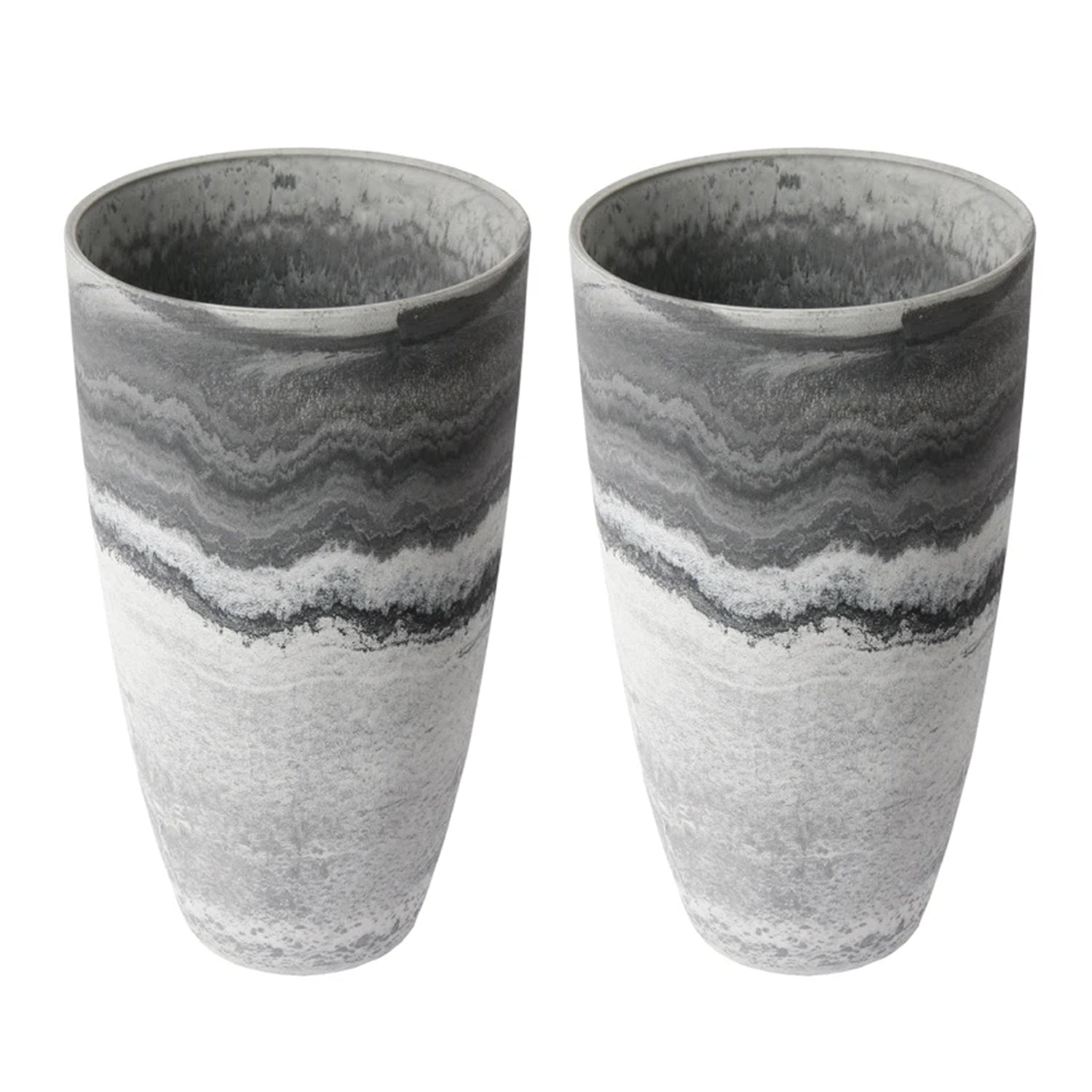 Algreen Acerra 12 x 20 Inch Curved Patio Vase Garden Planter, Marble (2 Pack)