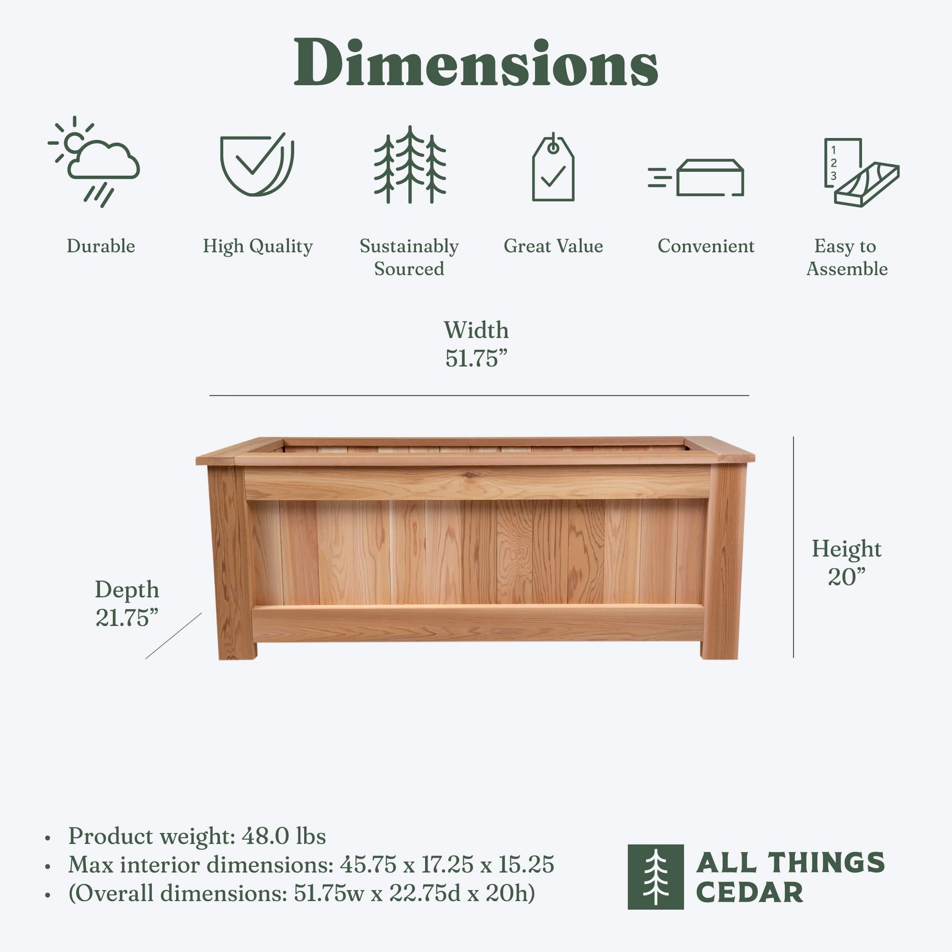 Crafted from the finest Western Red Cedar, the All Things Cedar Premium Cedar Box Planter is the epitome of natural beauty and unparalleled craftsmanship. Elevate your outdoor living space and transform it into a lush, flourishing sanctuary with this stunning planter box.
