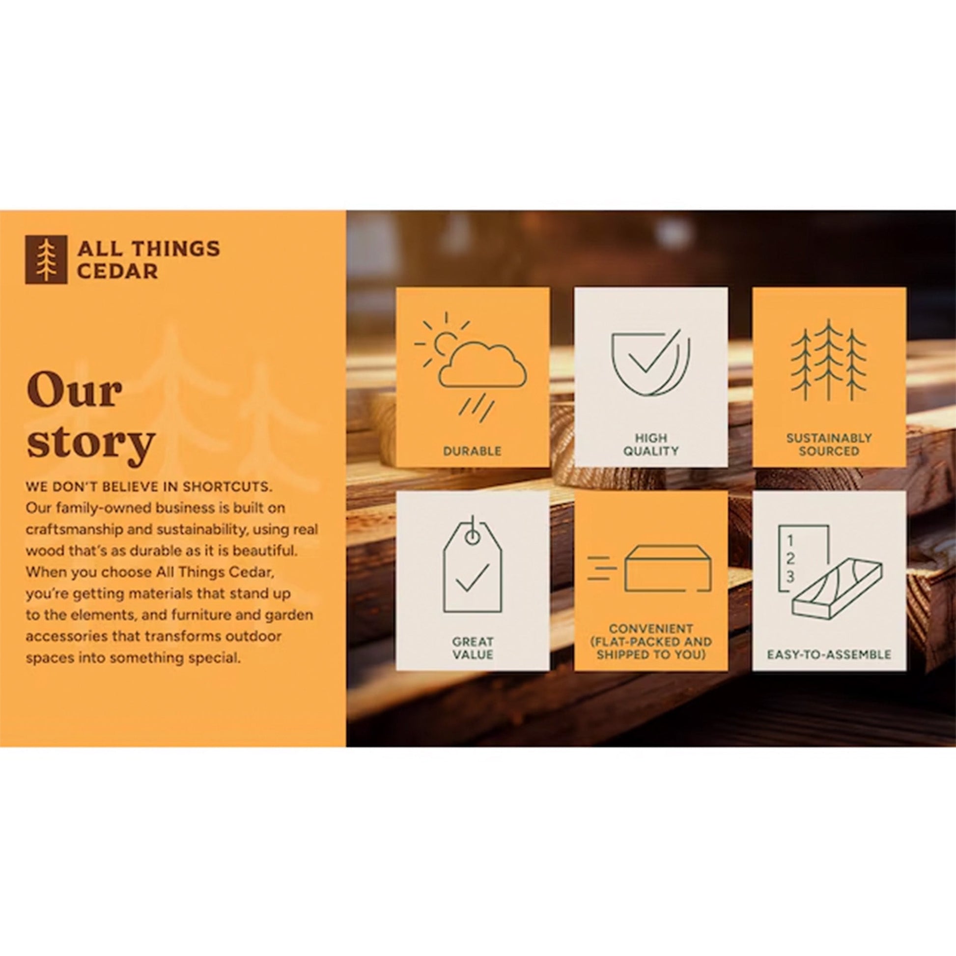 - For over 25 years, All Things Cedar has turned sustainably-sourced wood from the Pacific Northwest into high-quality patio and garden furniture