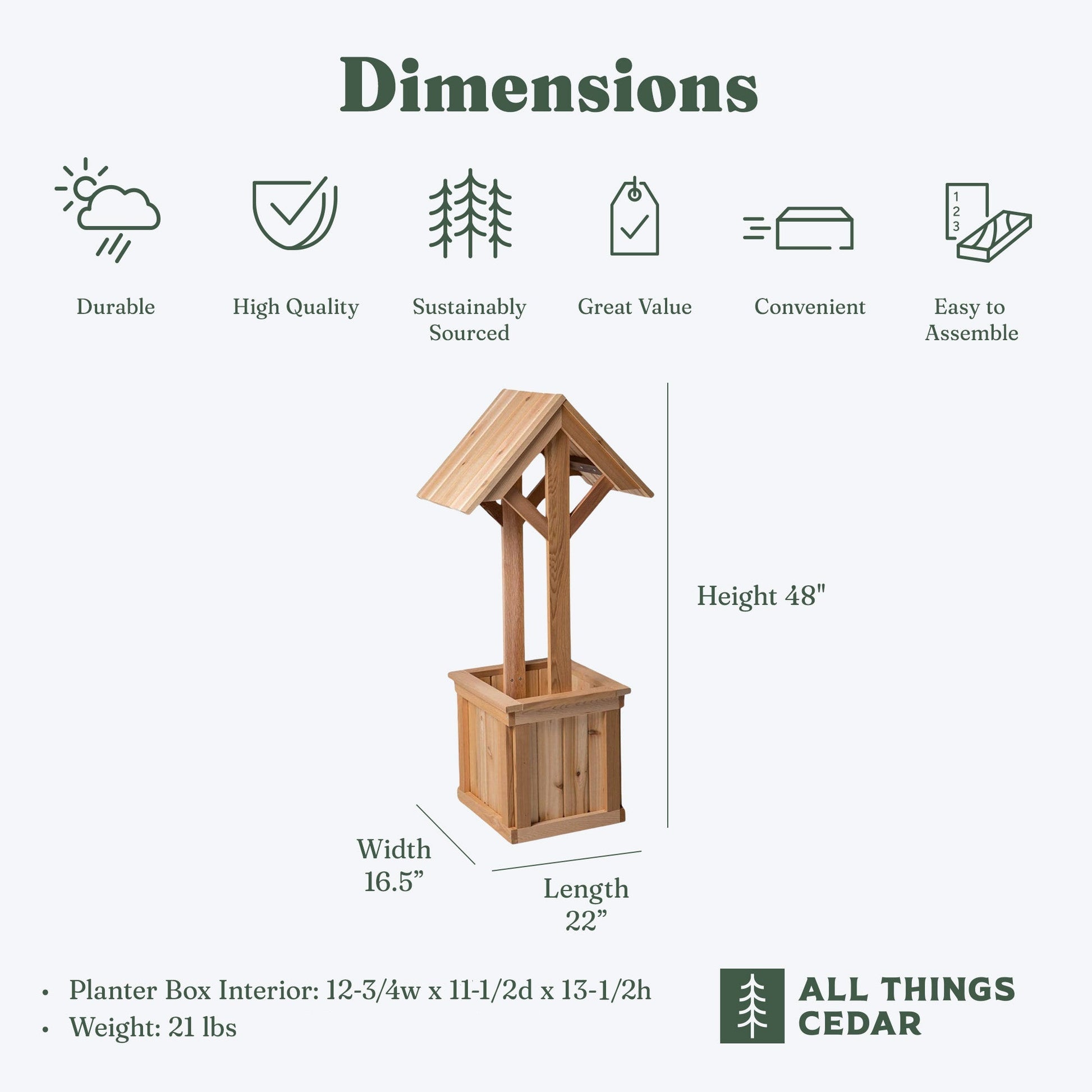 - Beautifully crafted from rot-resistant Western Red Cedar, this 4-ft wishing well planter box adds timeless, natural appeal to any outdoor space