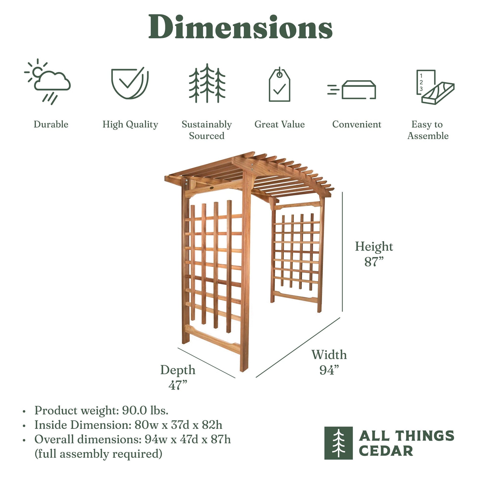 - Revel in the exquisite quality of our premium cedar arbor, a beacon of superior outdoor living that withstands the elements for seasons of use