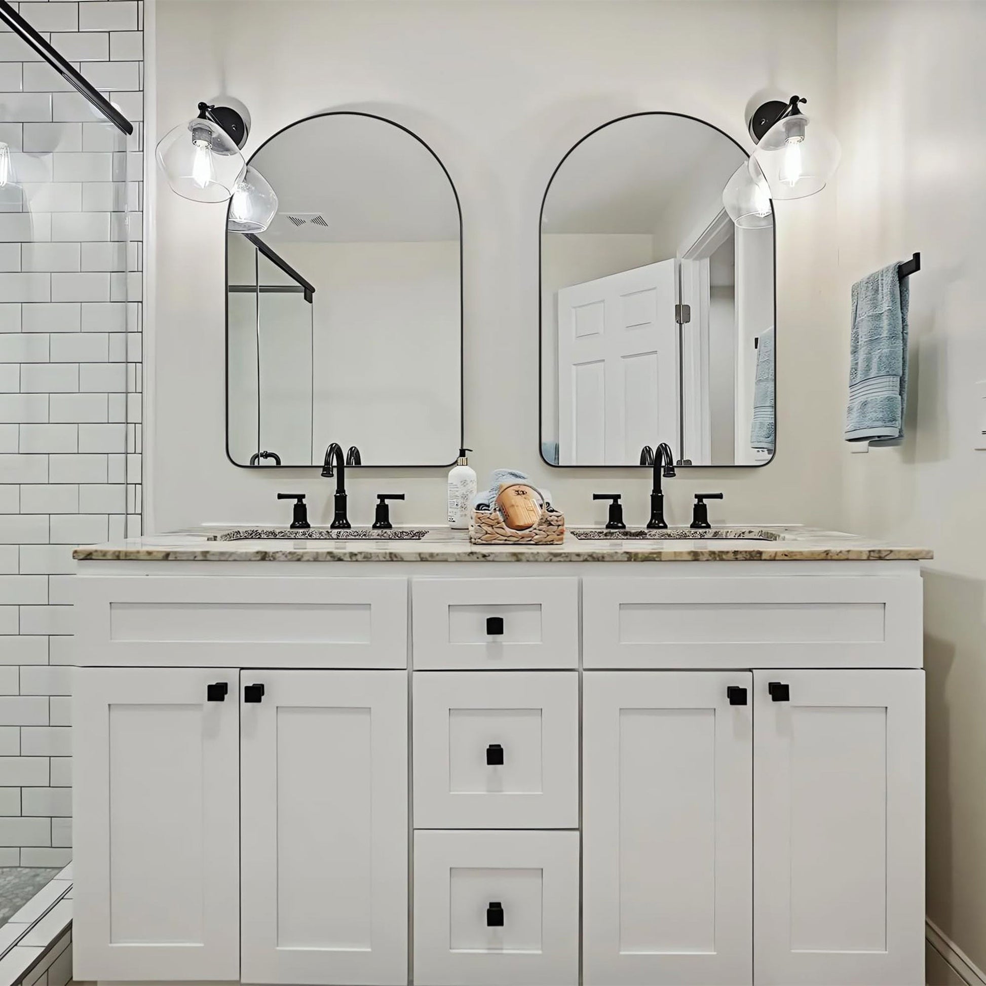 Crafted with a sleek SUS304 stainless steel frame, no-distortion HD floating glass, and a 9mm MDF backboard, this arched mirror is built to last. The plate glass mirror floats in the premium stainless steel metal frame surrounded by a thin 1/12-inch gap, ensuring the mirror’s structural integrity over time. Measuring 22 inches wide by 35 inches long, this mirror takes up a ton of open space on your walls.