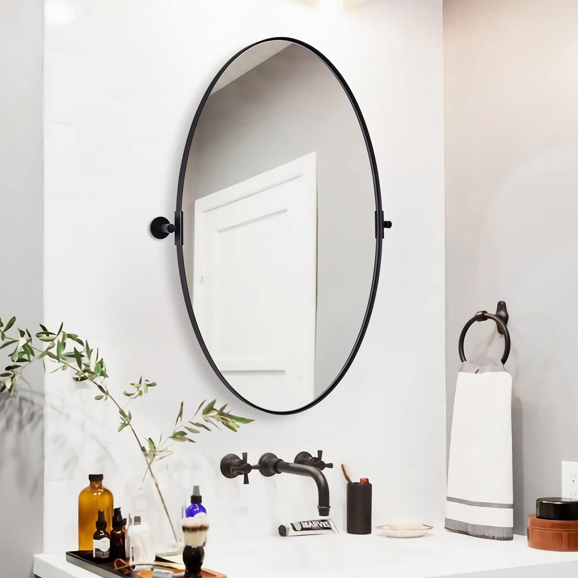 - Oval wall-mounting bathroom vanity mirror features an adjustable pivoting frame that allows you to tilt the mirror to custom angles