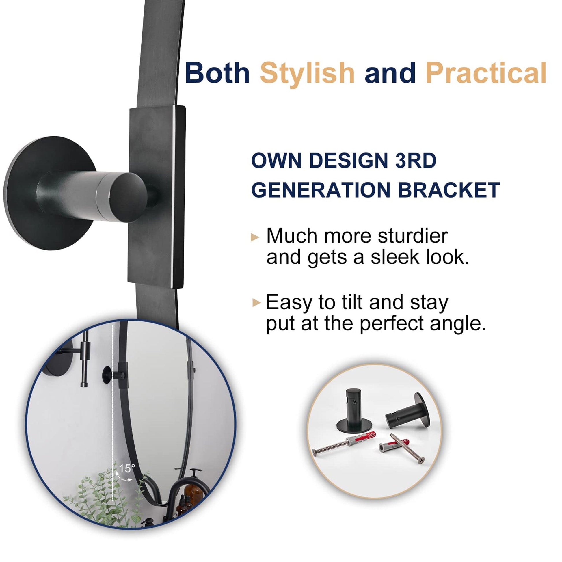 - Premium construction features high-quality stainless steel, no-distortion 4MM HD floating glass, 9mm MDF backboard, and sturdy wall brackets