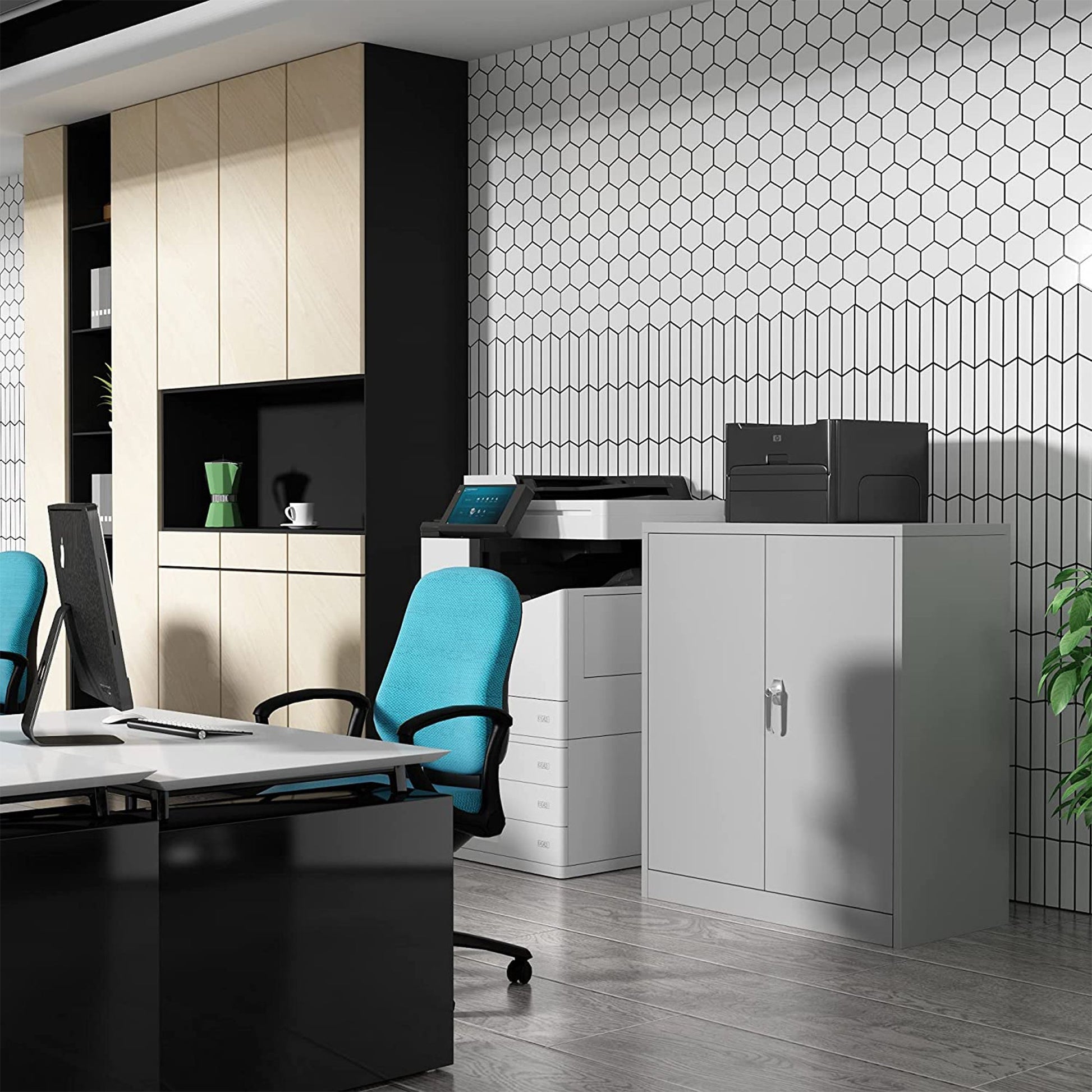 This storage cabinet features 2 shelves that can be adjusted up or down to accommodate larger or taller items. Both doors lock shut using a 3-point locking mechanism to keep the contents secure. With a durable steel design, this grey cabinet is a great storage option for garages, offices, pantries, or anywhere else you need secure storage in your home. This cabinet comes with detailed instructions, so you can easily assemble the device. With 2 keys included, so you can still conveniently open the cabinet if 1 key is lost. This storage cabinet measures 36 inches long, 18 inches wide, and 41.6 inches tall to keep things safe in your home or office space.
