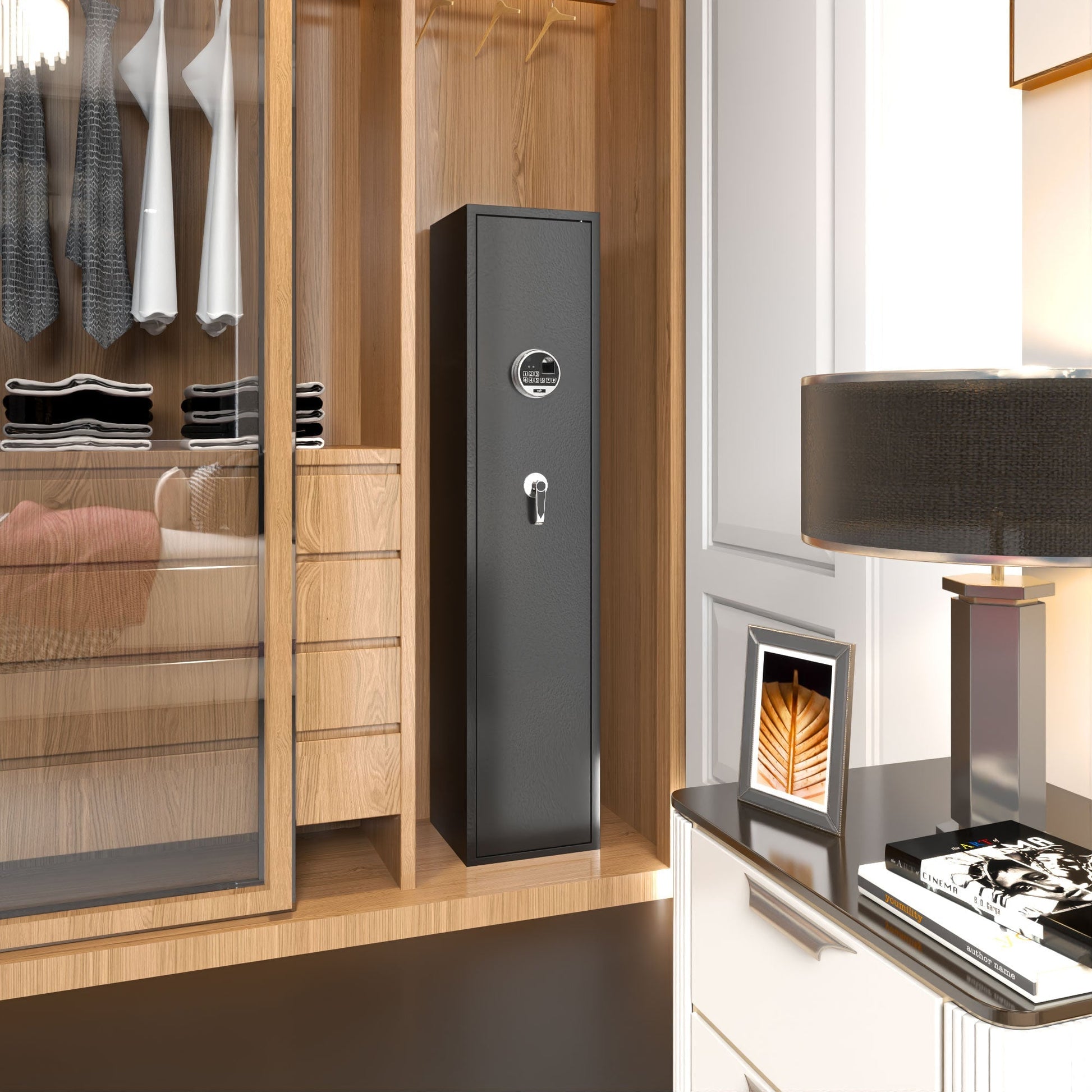 This gun safe for rifles and pistols makes sure your guns are kept behind locked doors, giving you peace of mind whether at home or away on a trip. With quick access using the programmable 10-digit touchscreen keypad, you can set your password in 2 different ways. Either enter your password and rotate the handle, or you can use your key and rotate the handle to open. In case of emergency, the home safe includes 2 keys for added convenience. If the rifle safe beeps 3 times, the security system indicates that 2 passwords are not the same and the setting fails. When desired, you have the option to set the system to silent mode.