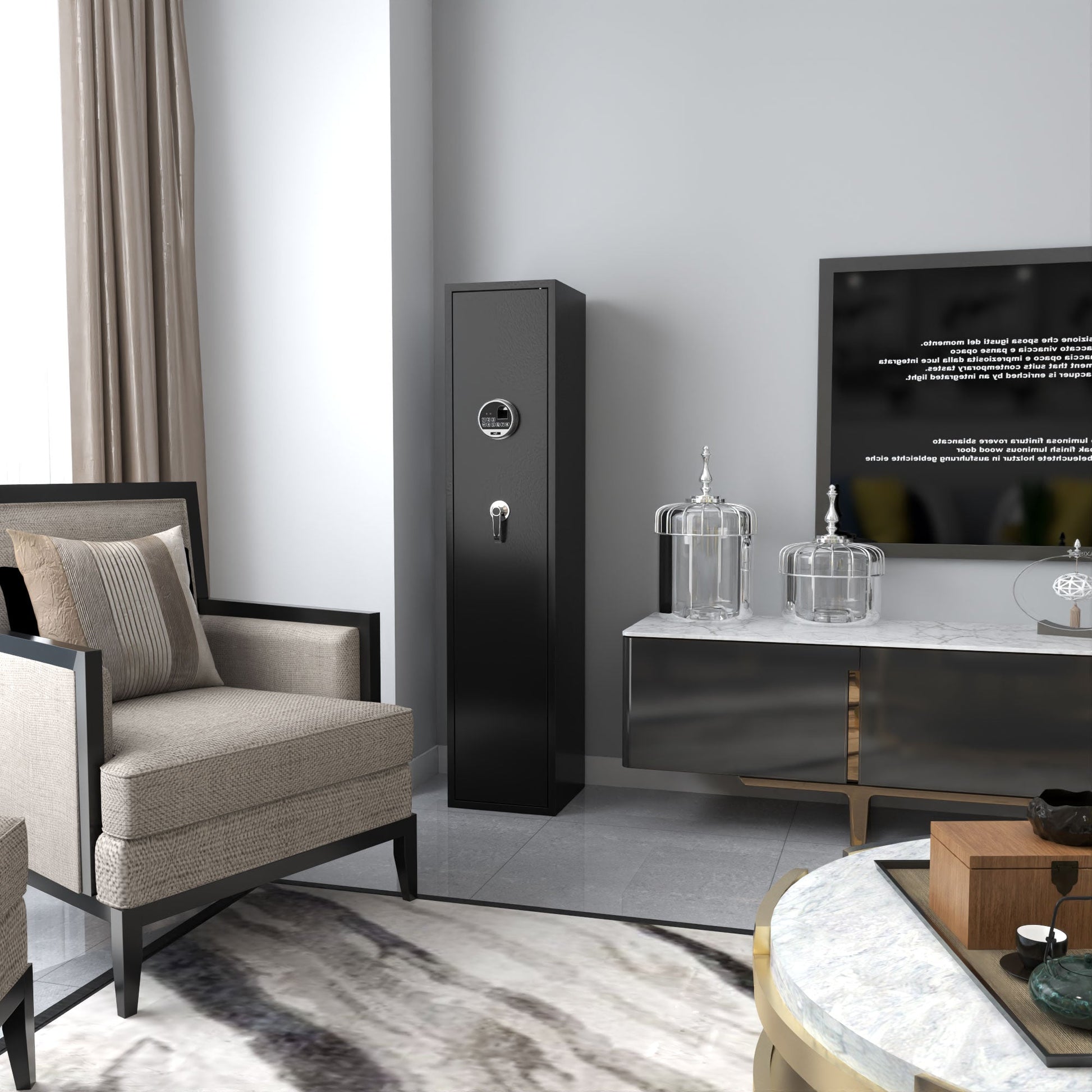 - Large and deep gun cabinet can store up to 5 rifles and 2 pistols; It will fit your firearms if you have optics/scopes attached or a rail mount on top