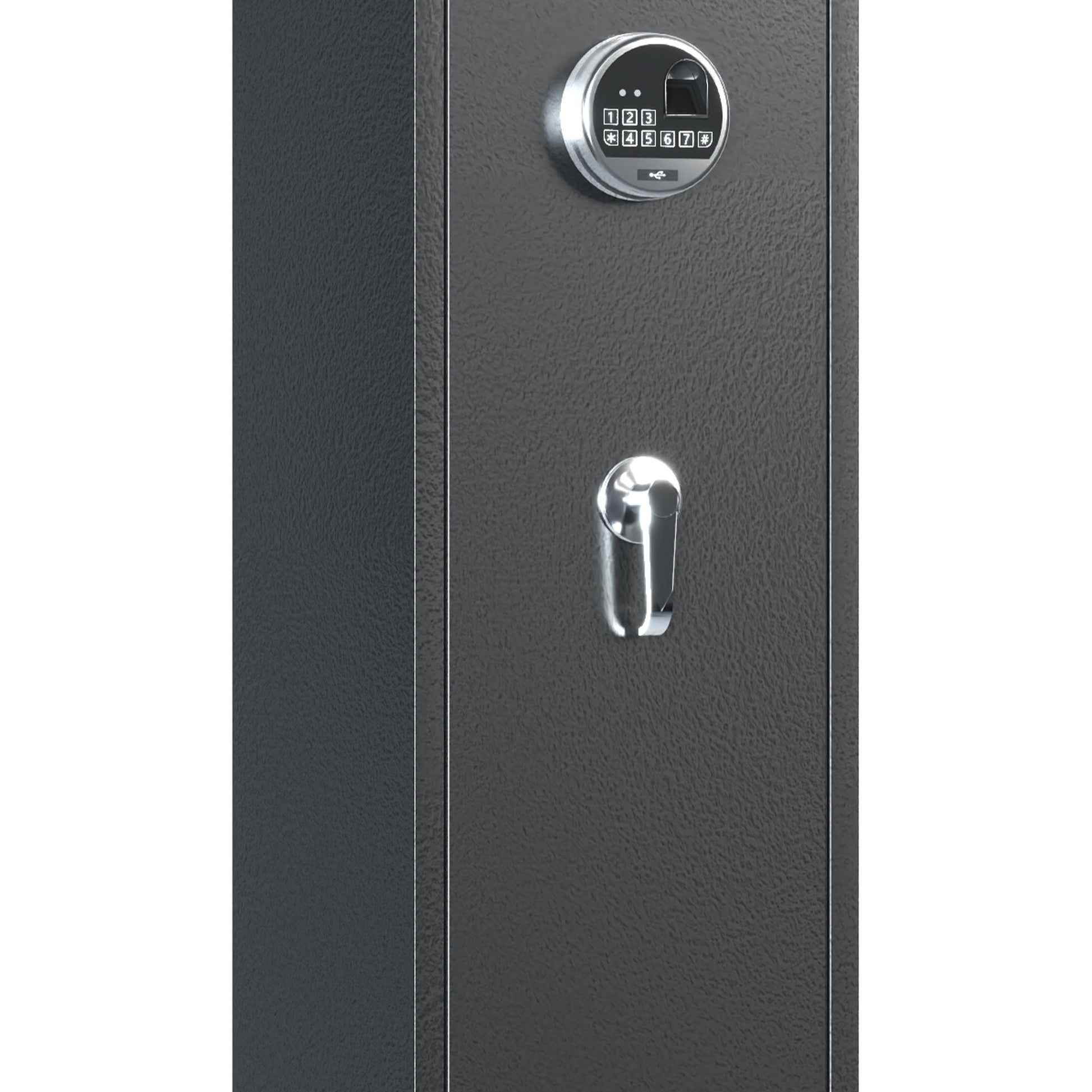 - Offers 3 access options: fingerprint recognition, a 10-digit keypad, and two emergency keys for quick opening