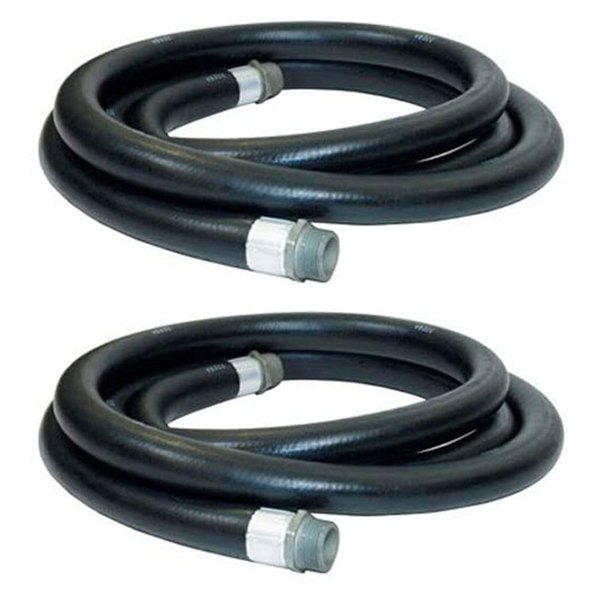 This fuel transfer pump hose is made from black nitrile rubber and internal spring guards that prevent kinking. It's coupled with male fittings on each end and built-in statie wire to dissipate static electricity associated with electric pumps. This fuel hose is made of oil-resistant tube and cover construction to ensure that the transfer of liquids goes as smoothly as possible. The spiral is reinforced with synthetic yarn for the best performance. Lightweight, durable, and dependable, this farm fuel transfer hose is perfect for a variety of uses both personal and professional. This bundle comes with 2 packs of fuel-transfer hoses.