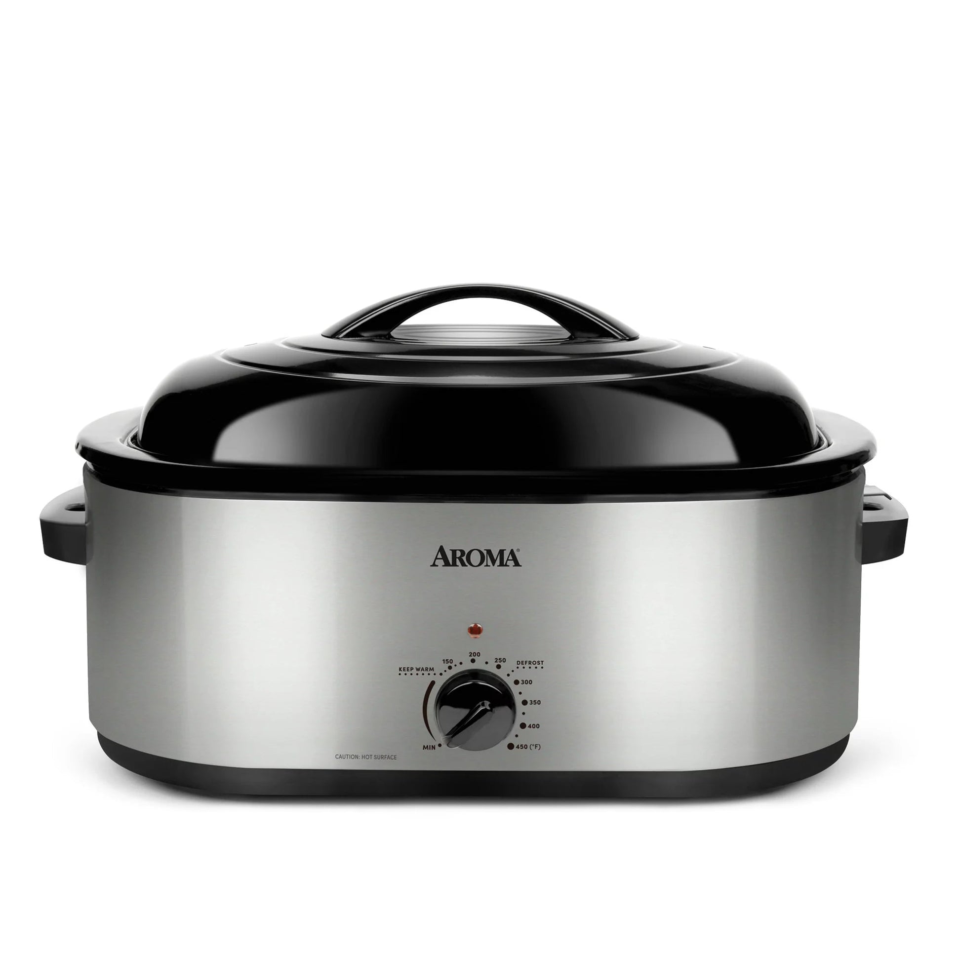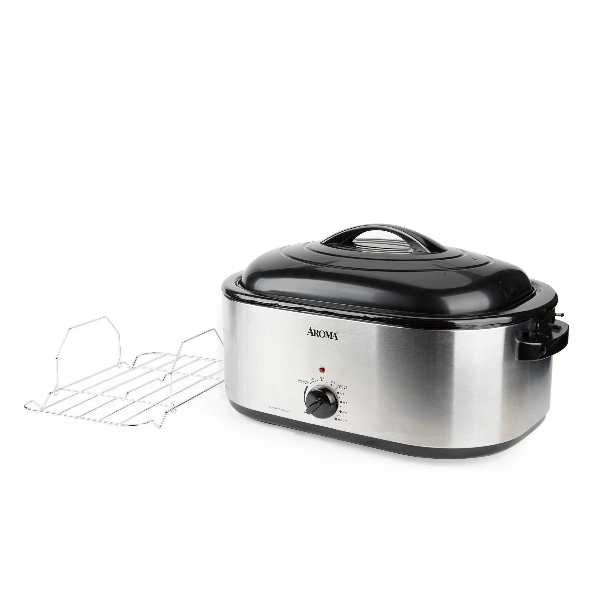 Aroma 22 Quart Electric Roaster Oven Stainless Steel with Self-Basting Lid, ART-712SB