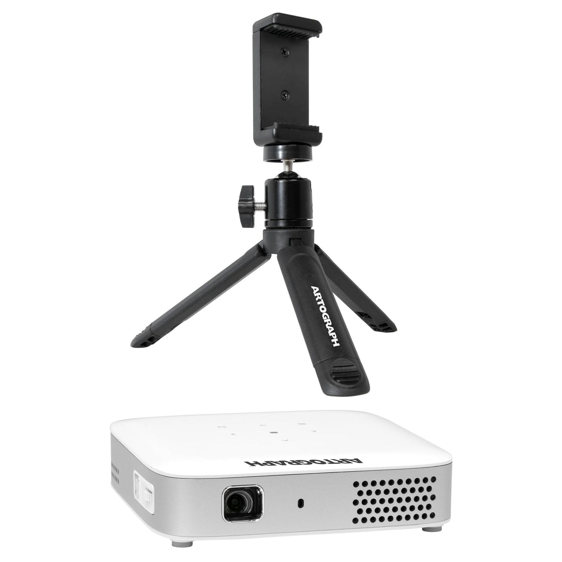 Pair it with the Artograph Mini Tripod Tabletop & Handheld Stand, the perfect portable accessory for stable projection or content creation. Its 360° swivel ball mount with locking knob and spring-loaded phone clamp (2"–3.25") accommodates most devices including projectors, smartphones, and cameras.