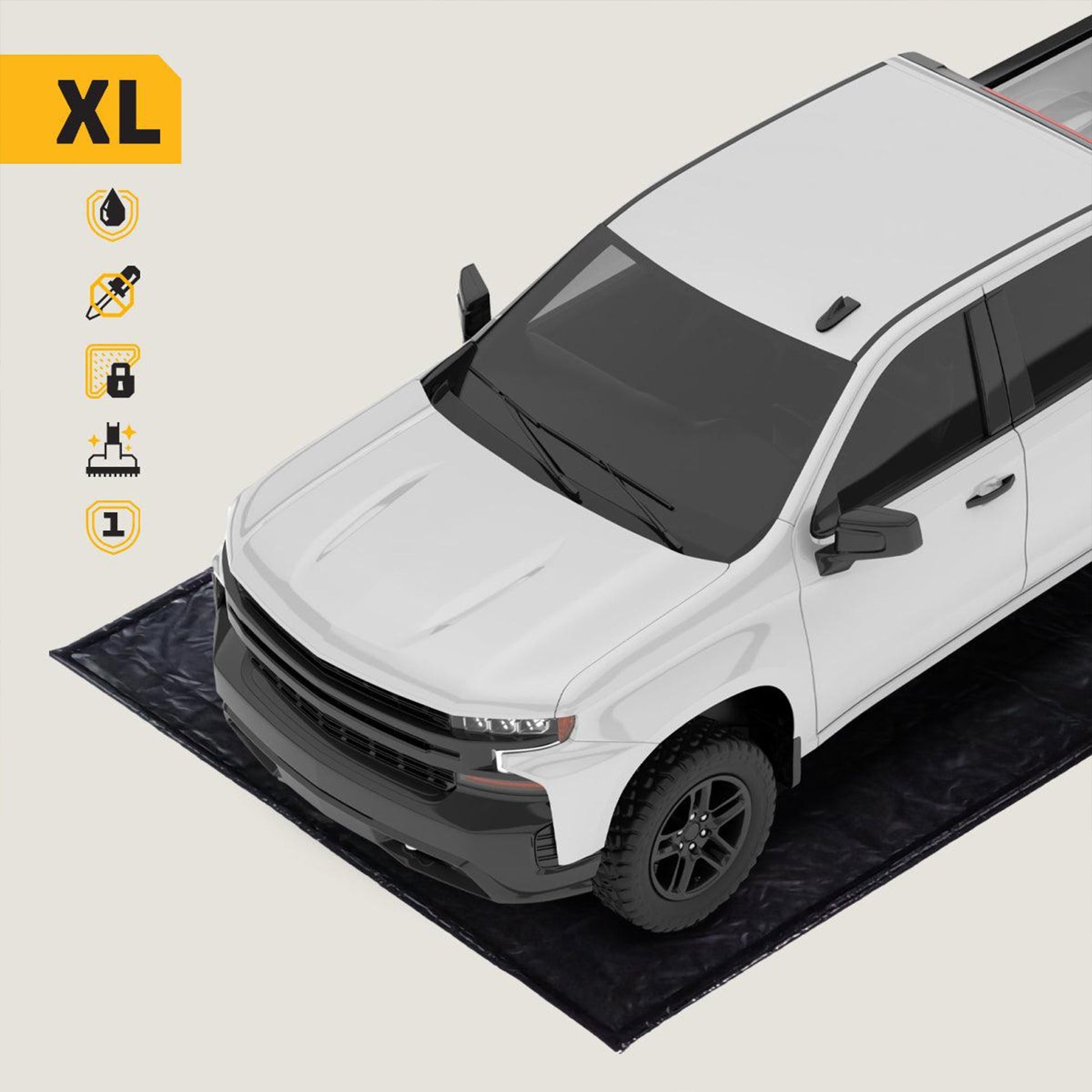 Unlike tarps or do-it-yourself methods to protect your garage floor, this containment mat is engineered with stay-put corners. This garage accessory will not slip out of place or need constant adjustment.