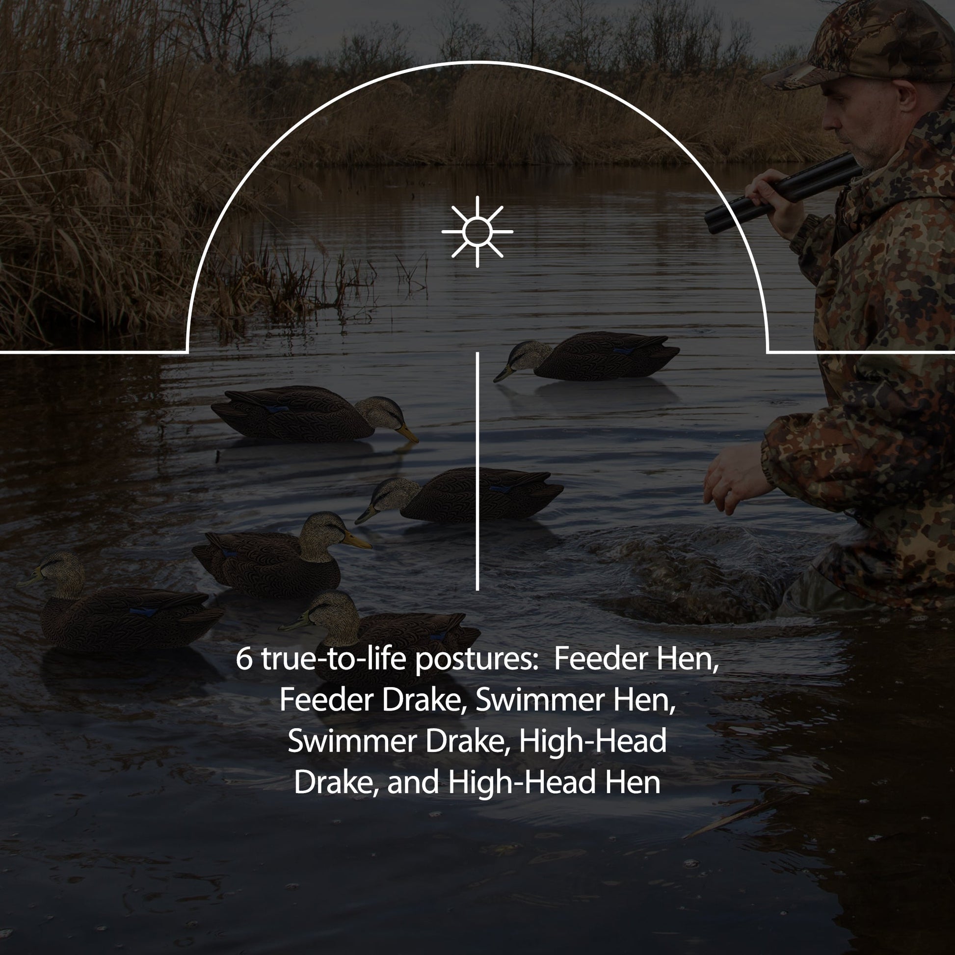 - Includes 6 true-to-life postures: Feeder Hen, Feeder Drake, Swimmer Hen, Swimmer Drake, High-Head Drake, and High-Head Hen