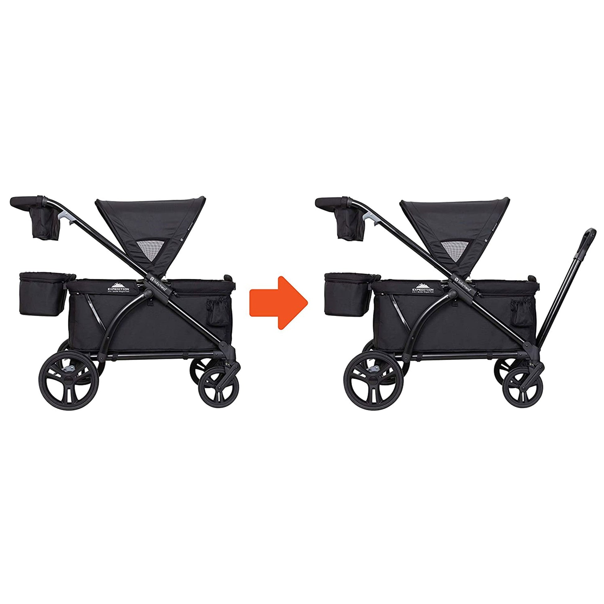 - Expedition 2-in-1 Stroller Wagon is a push stroller that can be transformed into a pull wagon when needed with a hideaway telescoping pull handle