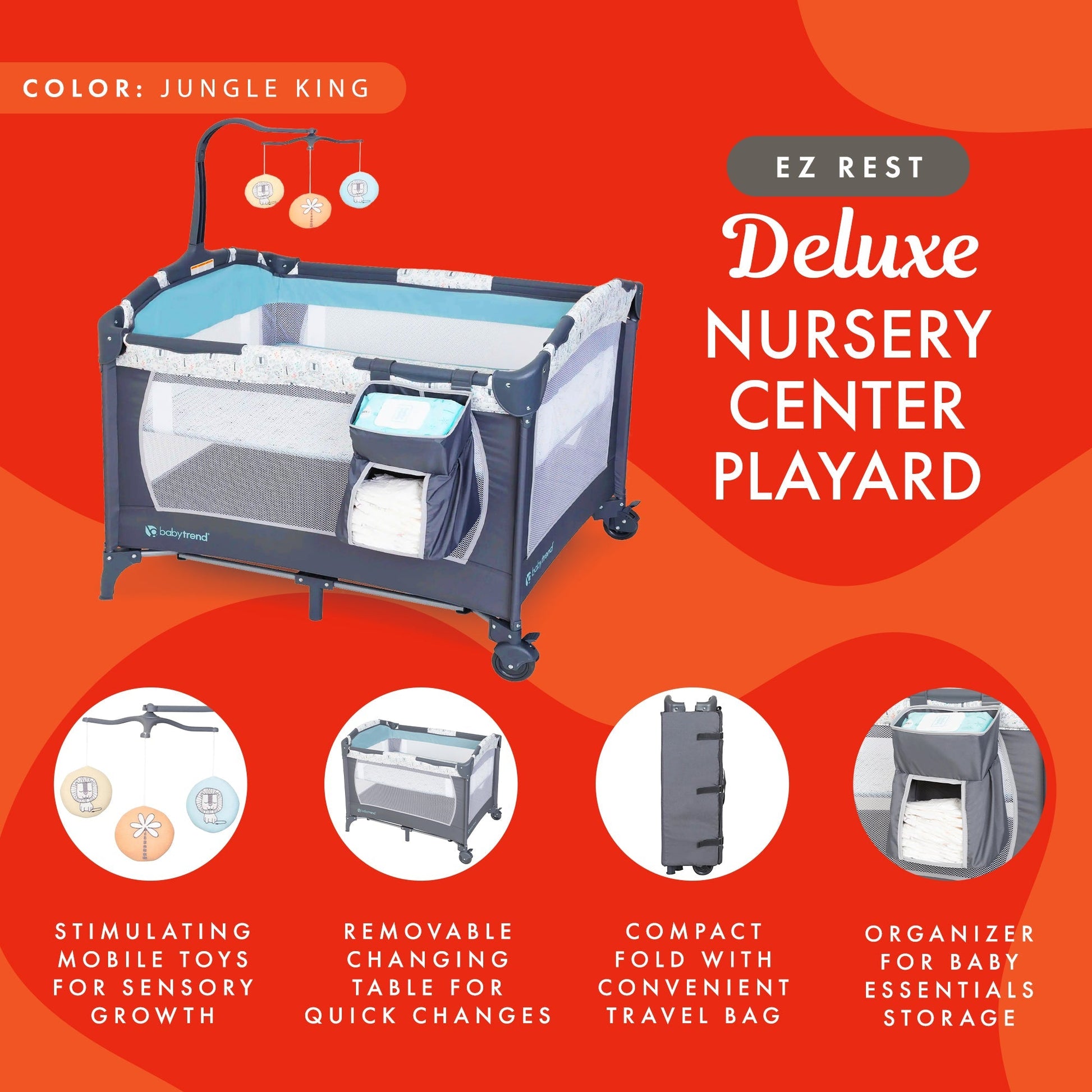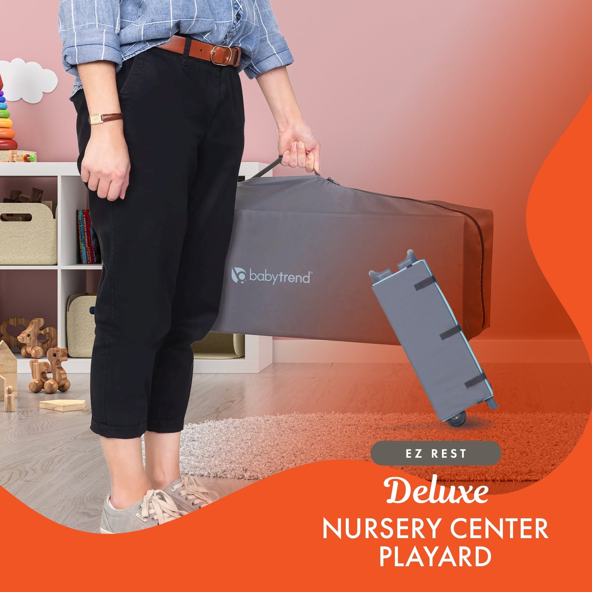 Introducing the Baby Trend EZ Rest Deluxe Nursery Center, the ultimate all-in-one solution for your little one's sleeping and playtime needs for the perfect addition to any living space.