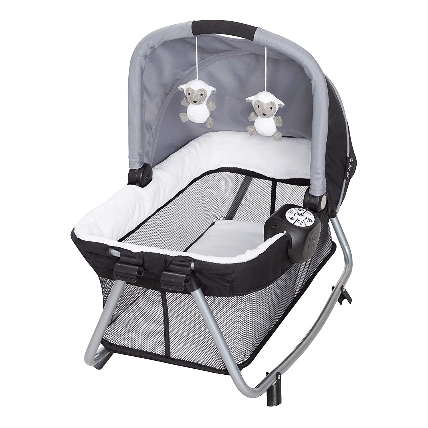 - Complete nursery center includes 2 removable Rock-A-Bye Bassinets with canopy and carry handle
