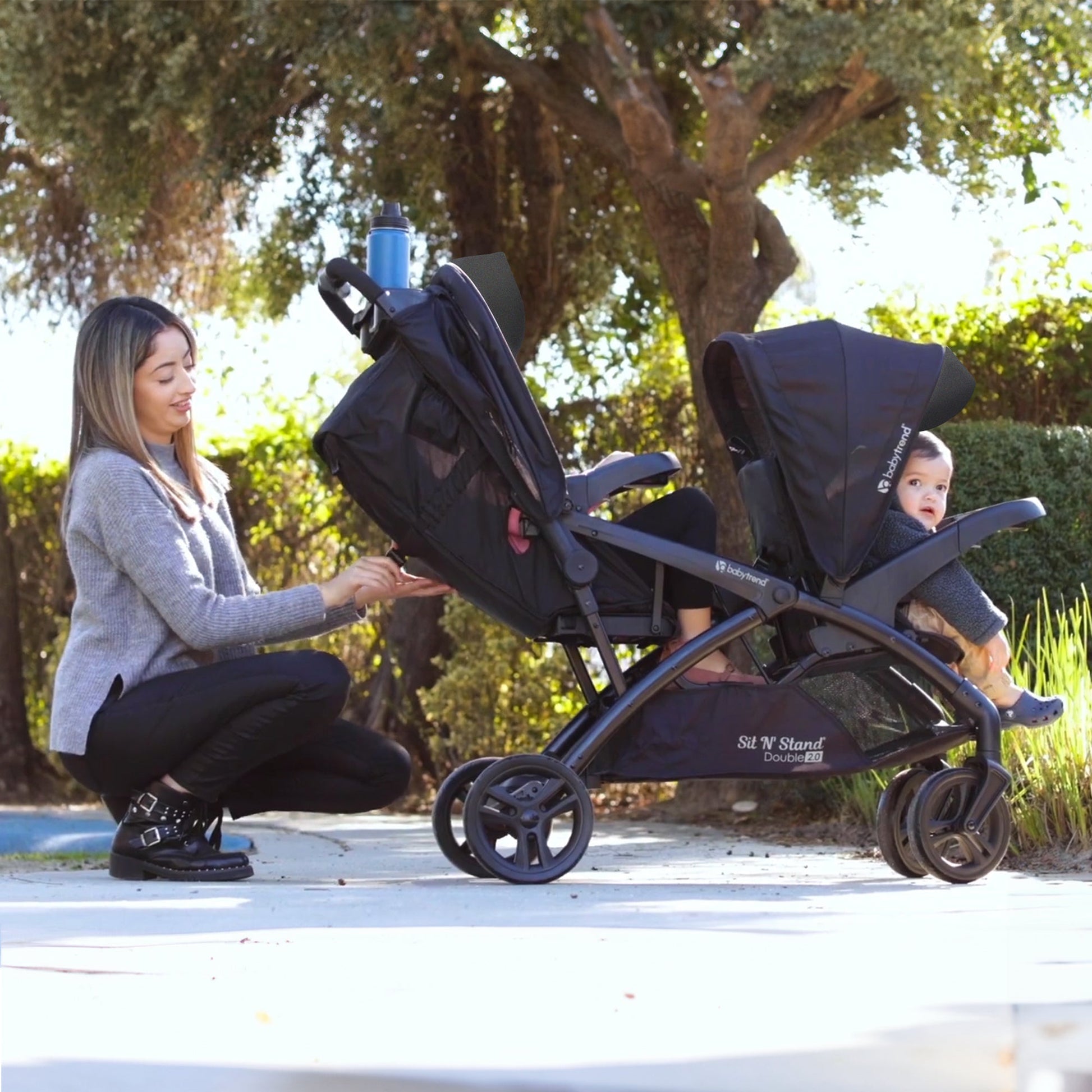 Enjoy each trip with your children with the Baby Trend Sit N' Stand Double Stroller.