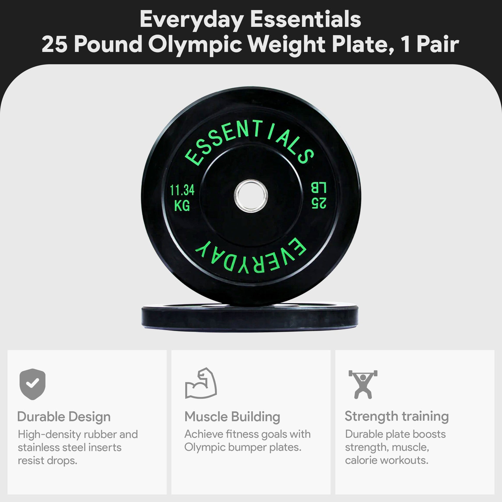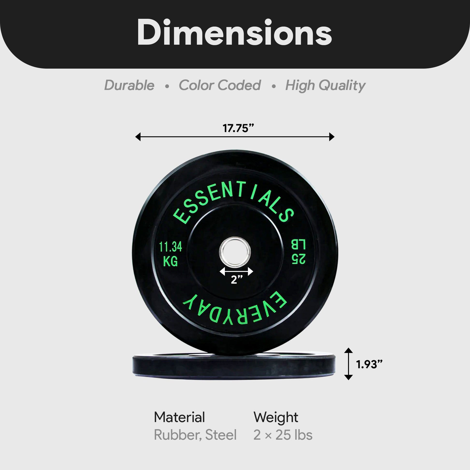 - Set of (2) 25-pound Olympic-style bumper plates for your Olympic barbell provide excellent weight for numerous exercises
