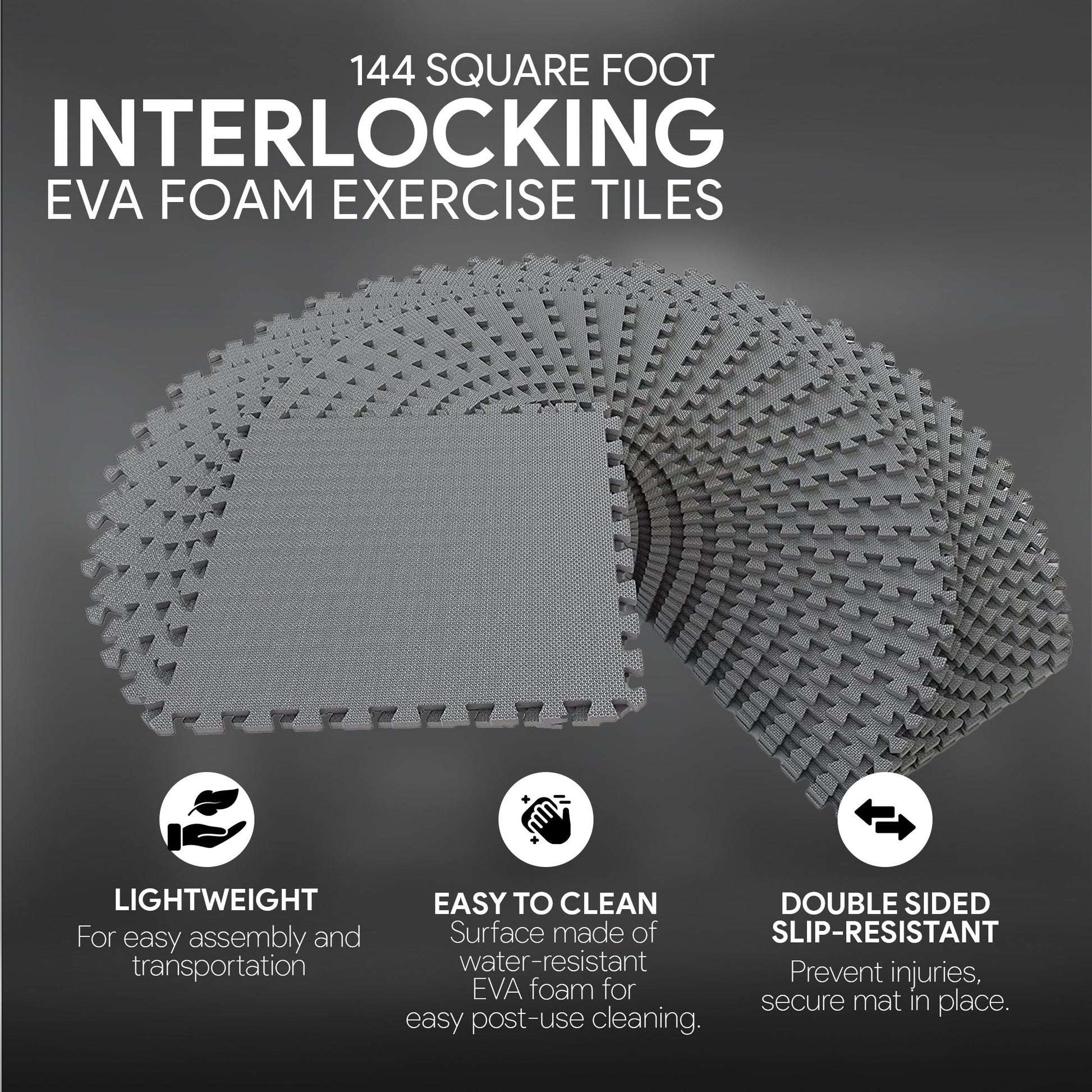 BalanceFrom Fitness 144 Sq Ft Interlocking EVA Foam Exercise Mat Tiles, Gray