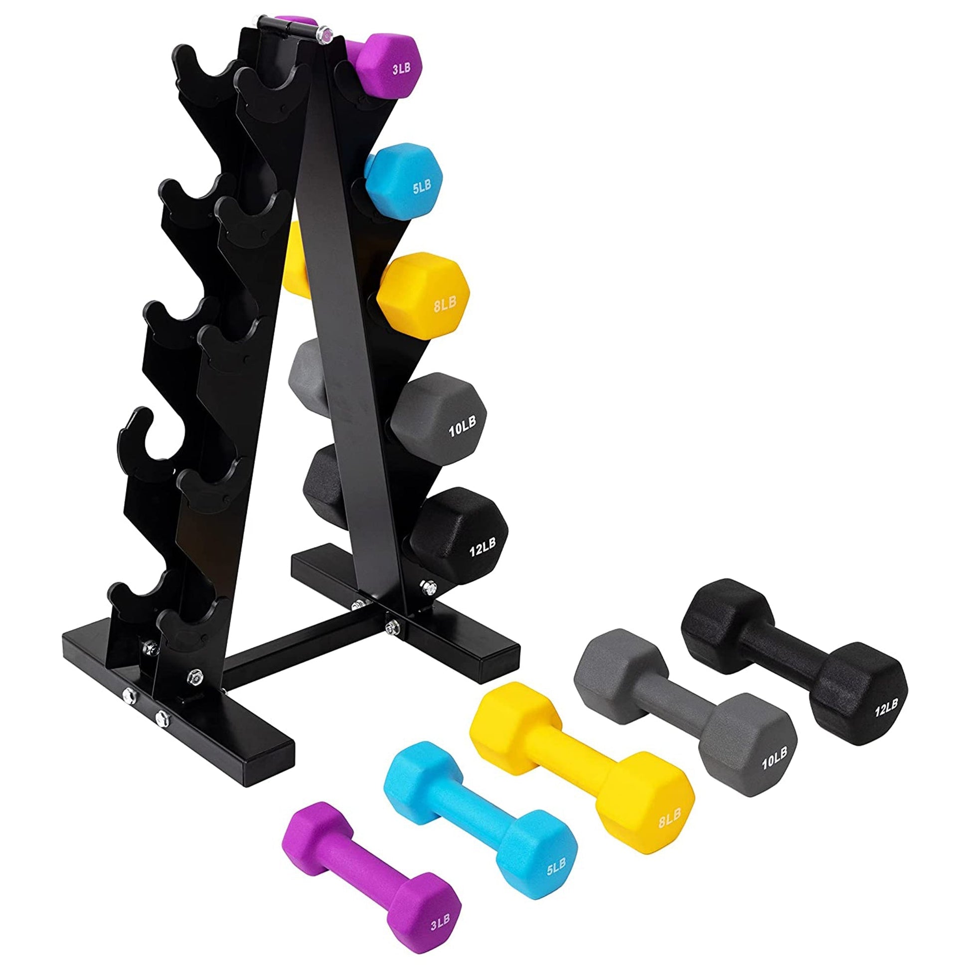 BalanceFrom Fitness 3, 5, 8, 10 & 12 Pound Neoprene Dumbbell Weight Set w/ Stand