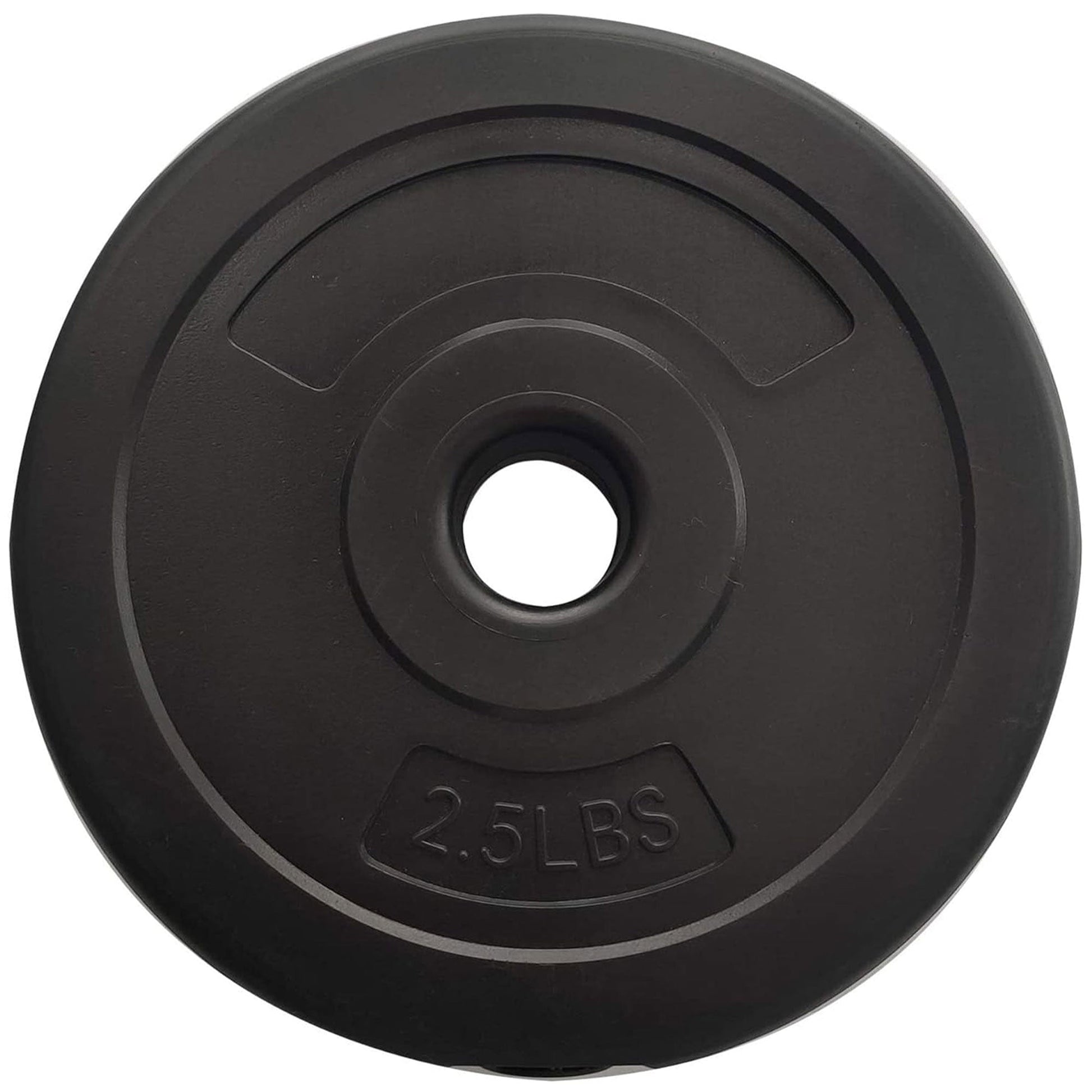 - Weights come in (4) 2.5-pound cement plates and (4) 7.5-pound cement plates with (2) 14-inch dumbbell handles and (4) collar locks