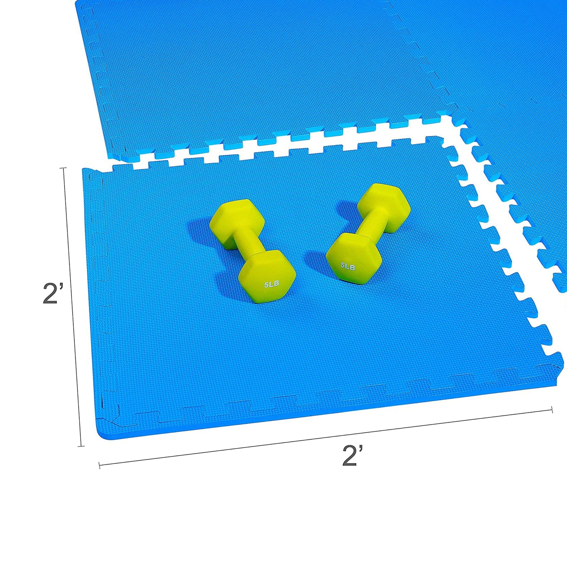 The lightweight design makes setting up in your home, gym, or daycare a breeze. With 18 24 x 24-inch exercise tiles with interlocking edges and 36 end borders, you get 72 square feet of durable support.