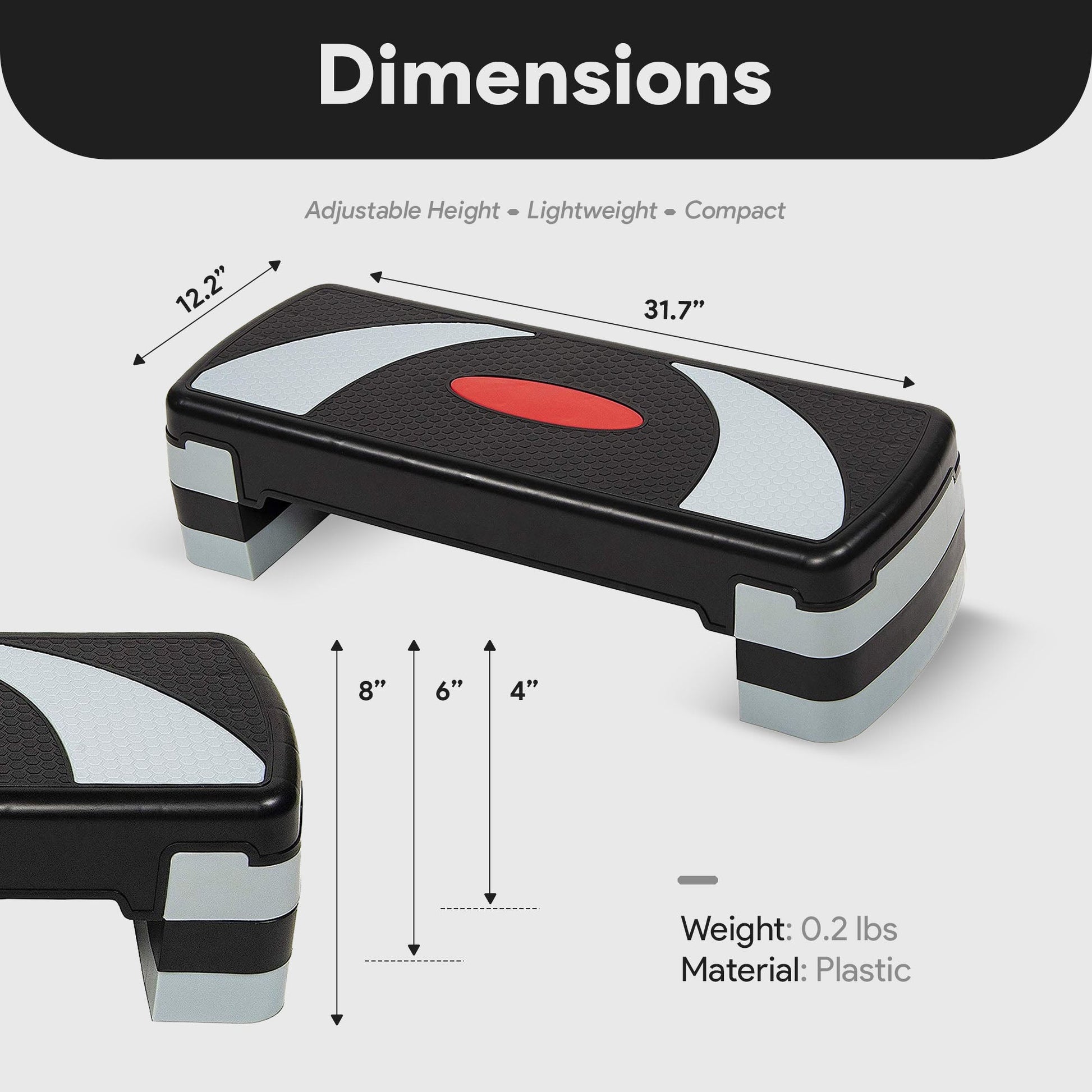 - Step platform trainer with adjustable raisers included; Customize the platform height to 4, 6, or 8 inches tall based on your needs
