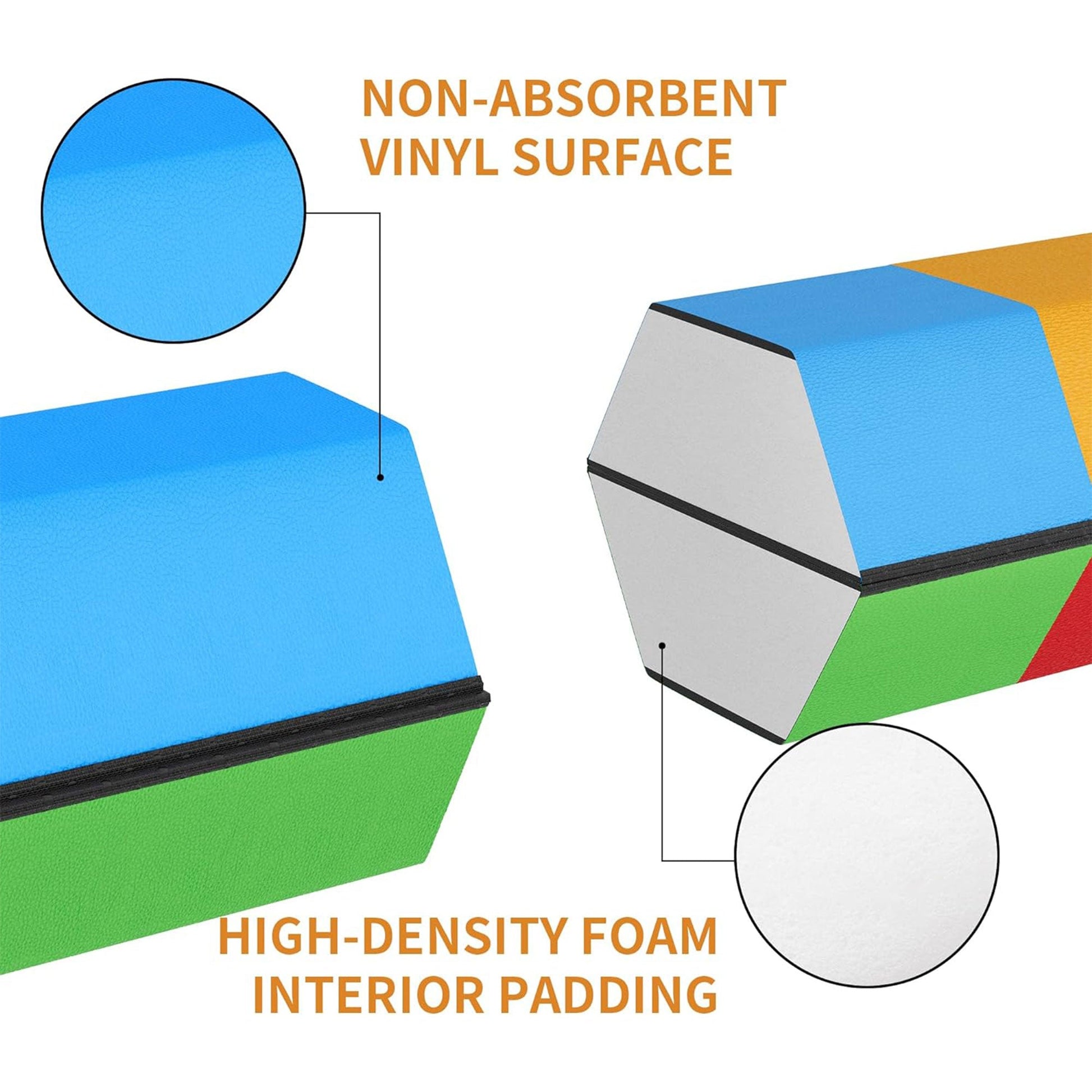 - Balance beam is crafted of high-density foam materials covered by high-grade PU to mimic the feel of competition beams for a professional training experience