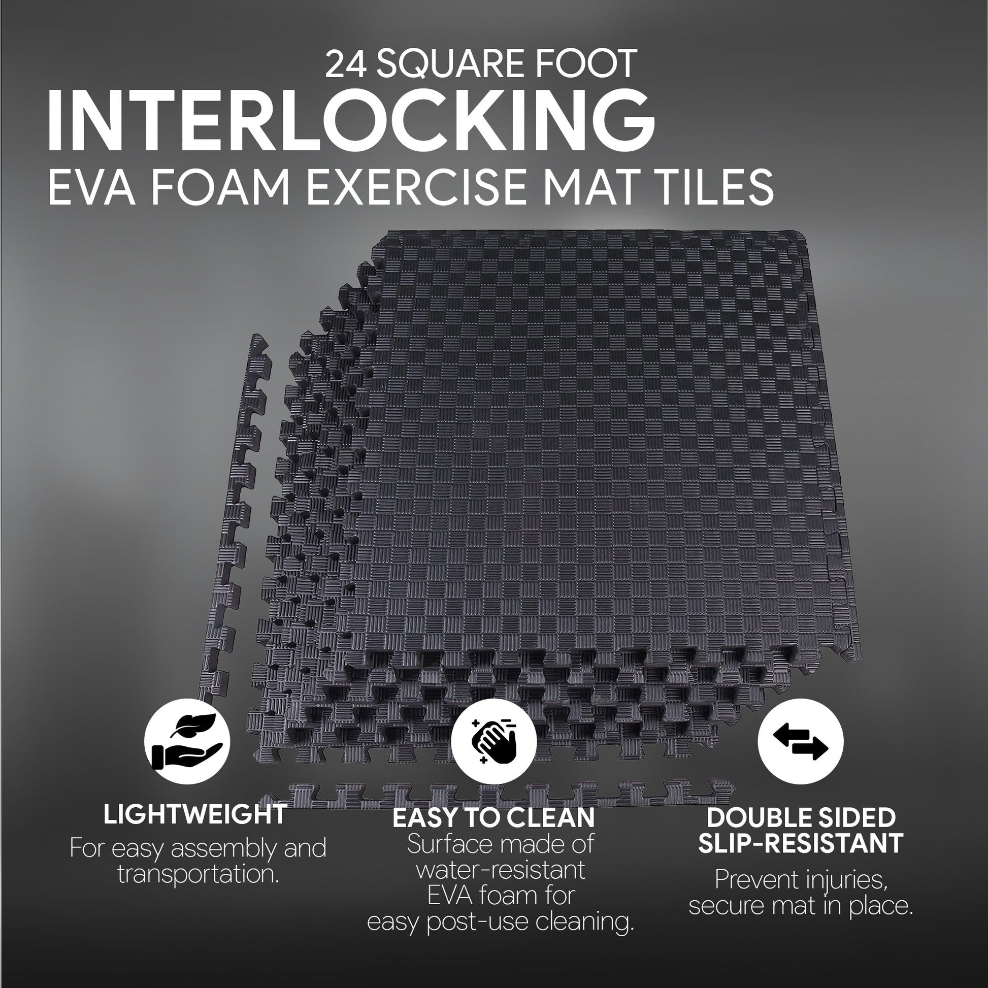 BalanceFrom Fitness Foam Interlocking Exercise Floor Mat, 24 Square Feet, Black