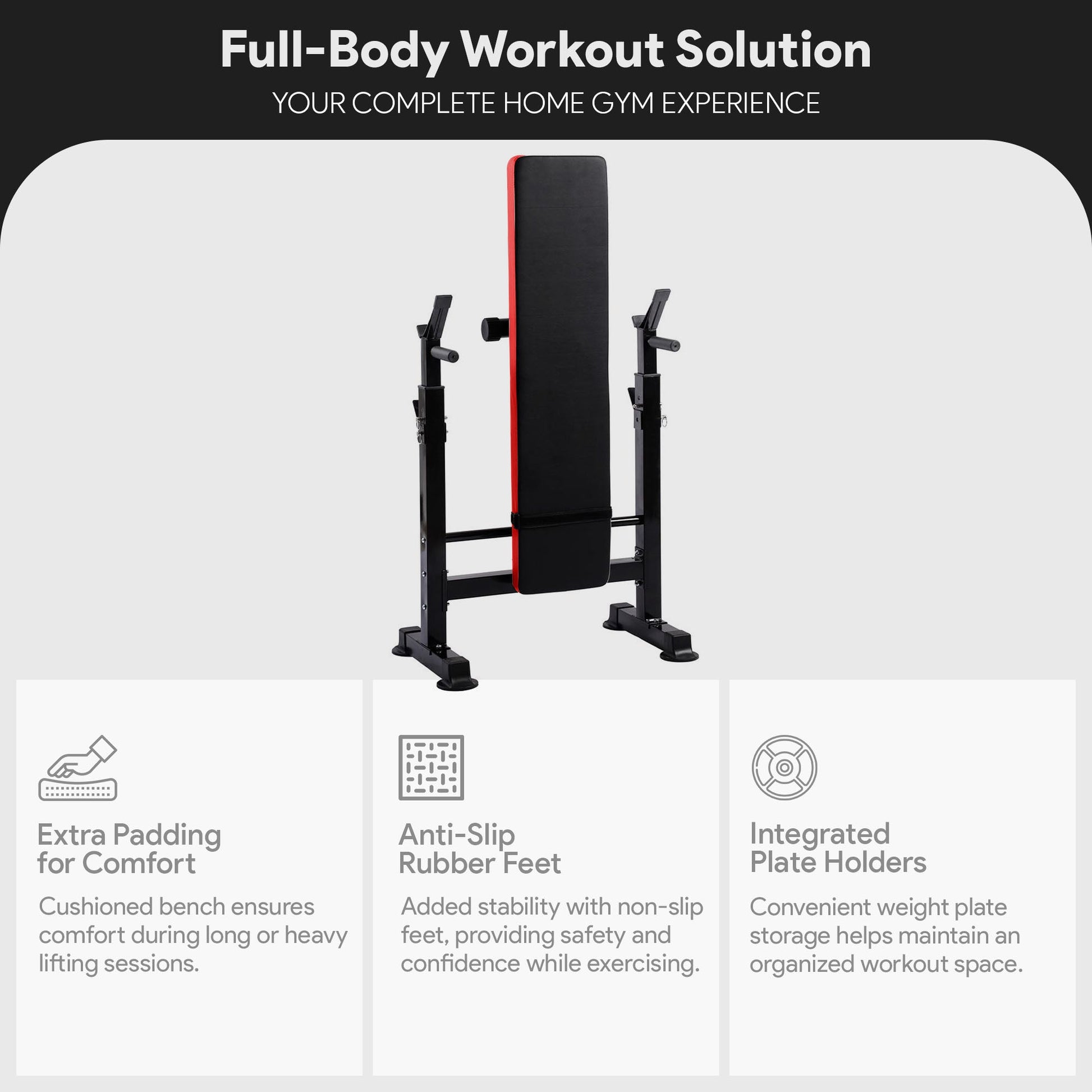 Get a full-body workout from the comfort of your own home with the Multifunctional Adjustable Bench for Home Gym with Squat Rack from BalanceFrom Fitness.