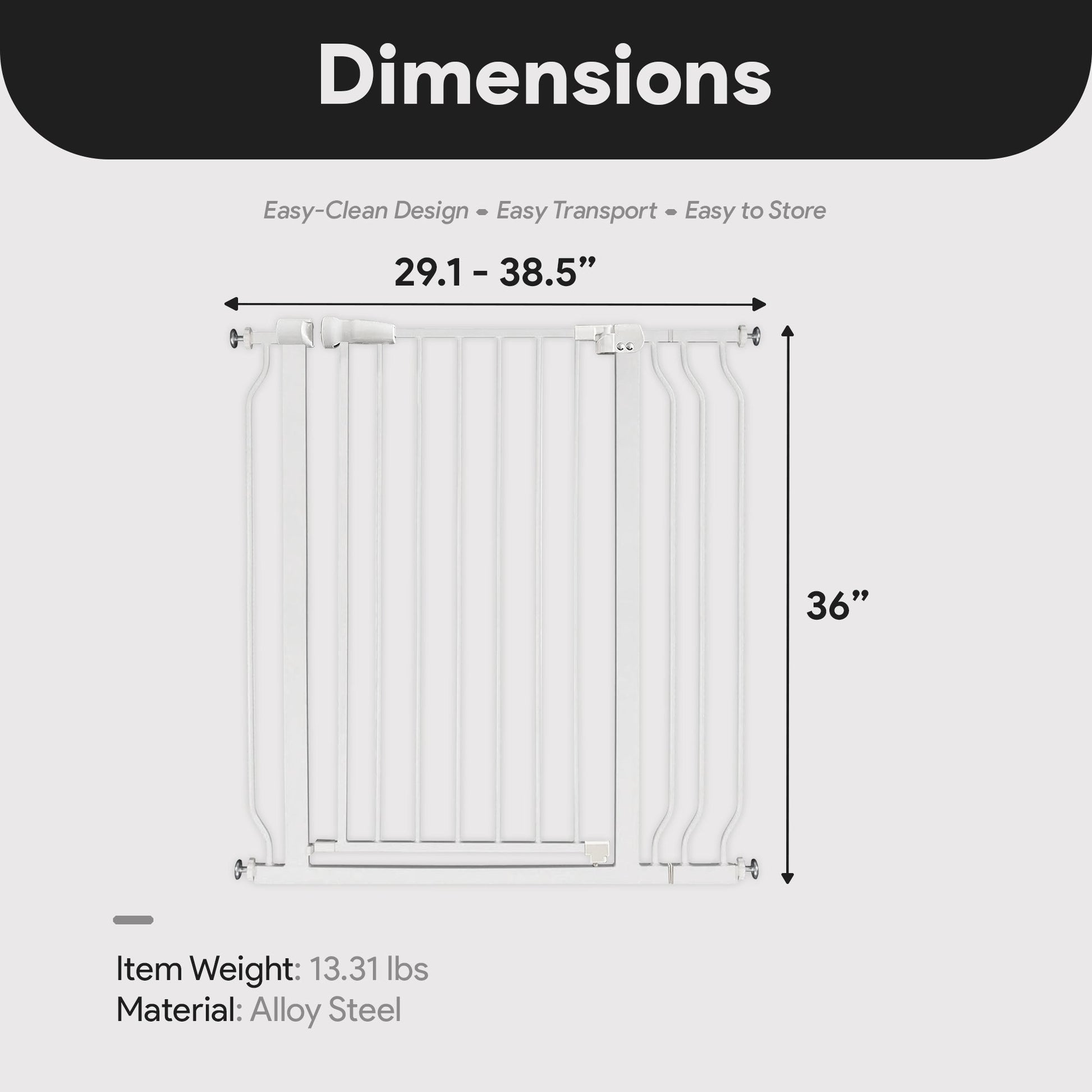 Designed with a 3-step opening, just pull the handle to the side, lift the handle, and push open the gate. The simple yet baby-proof design allows for effortless operation while easily perplexing the little ones, keeping them safe from entering unwanted rooms. With versatility in mind, this gate also works well for protecting your pets and confining them in any room of the house when needed. While toting your laundry back and forth, rely on the versatile operation modes, including hold-open and auto-close functions to simplify your trip. This baby and pet gate measures an adjustable 29.1-38.5 inches long, mere 1.25 inches wide, and 36 inches tall.