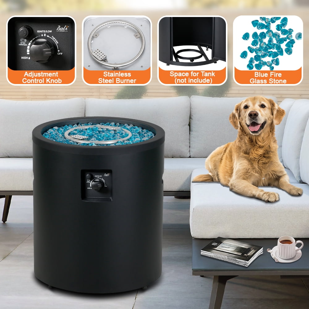 BALI OUTDOORS 23" Gas Fire Pit Propane Fire Column, 50,000BTU Round Propane Fire Pit Table with Glass Stones