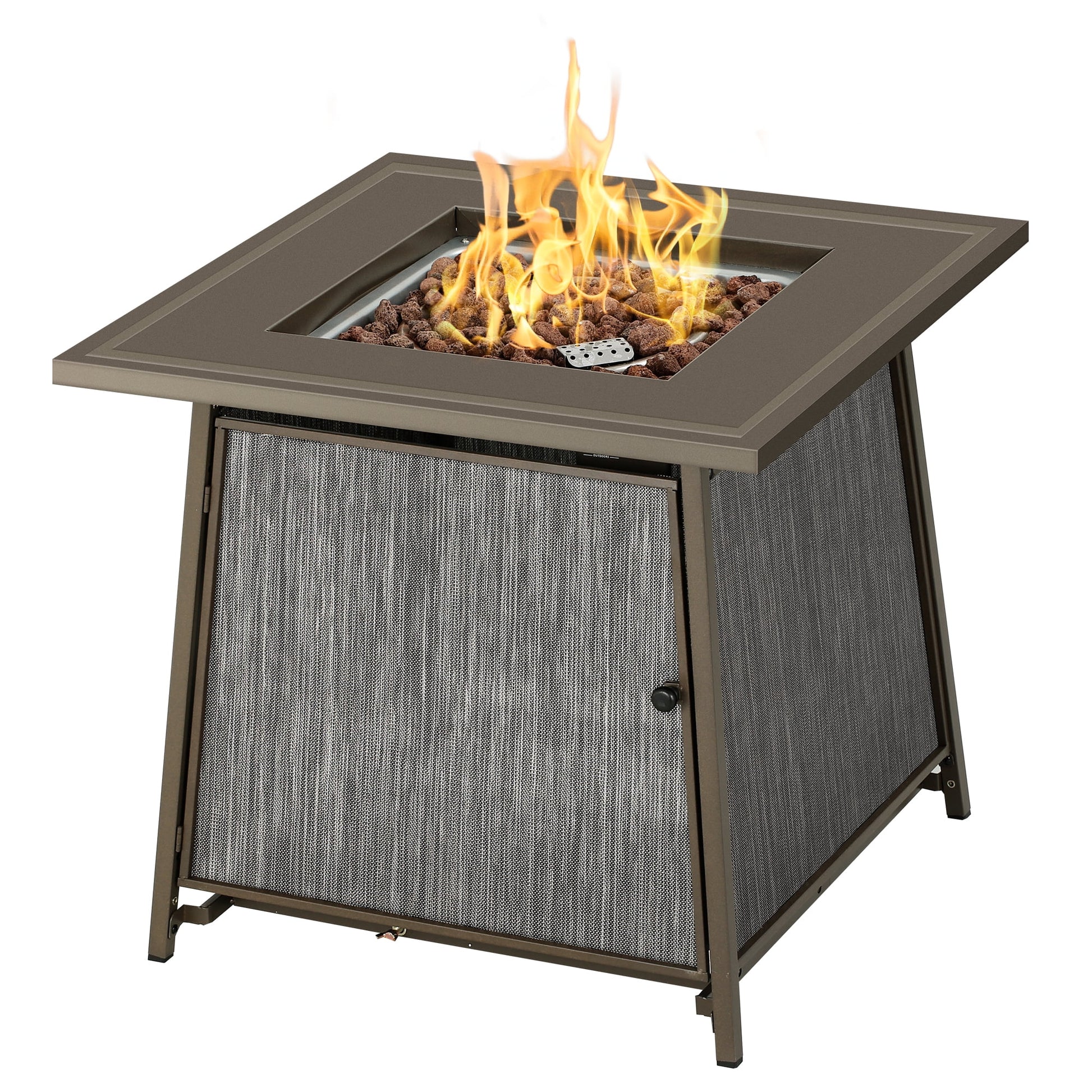 BALI OUTDOORS 28" Gas Fire Pit Table with Metal Lid and Lava Rocks, 50,000 BTU / Gray