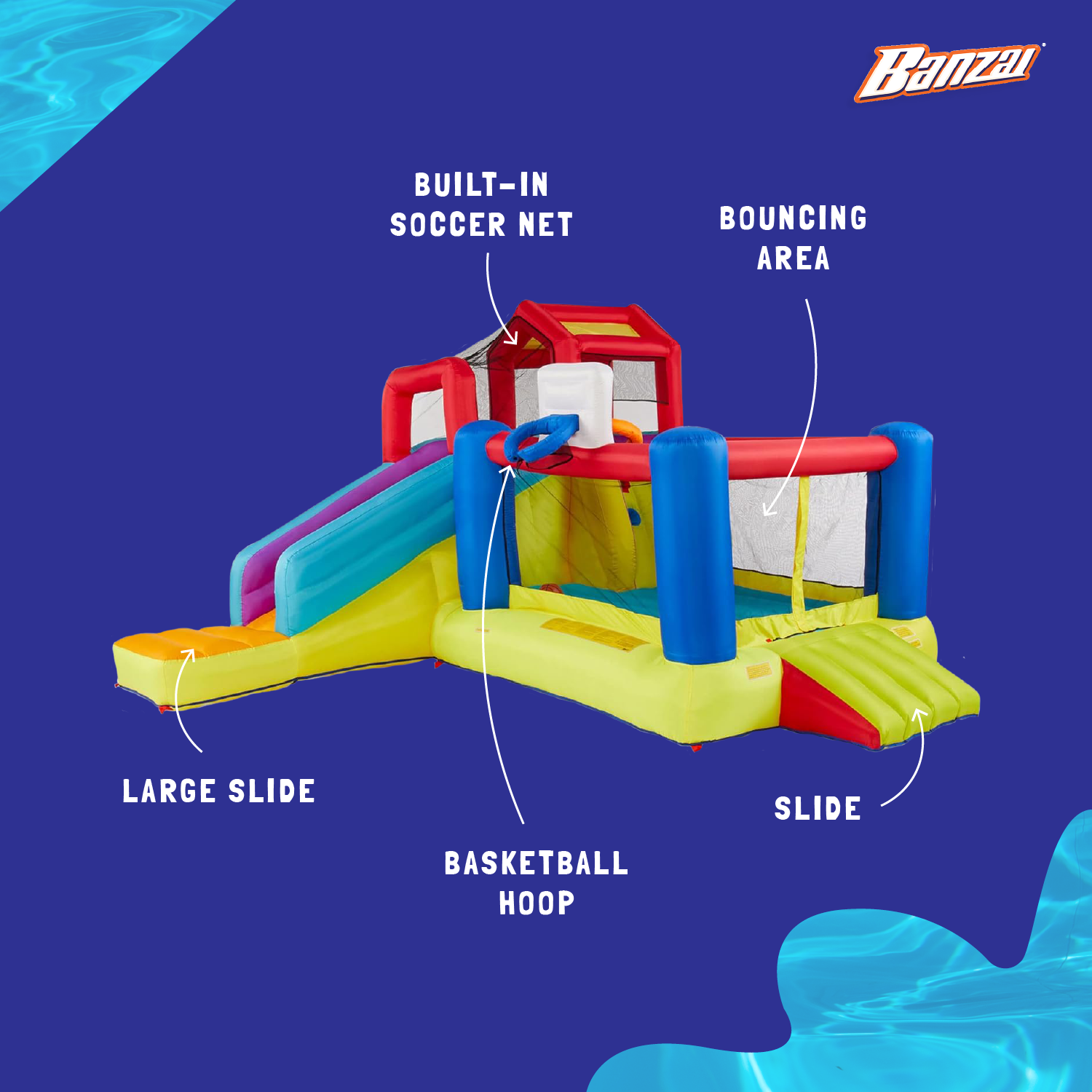 Boost summertime fun with this Banzai Bounce House and Sports Play Center.