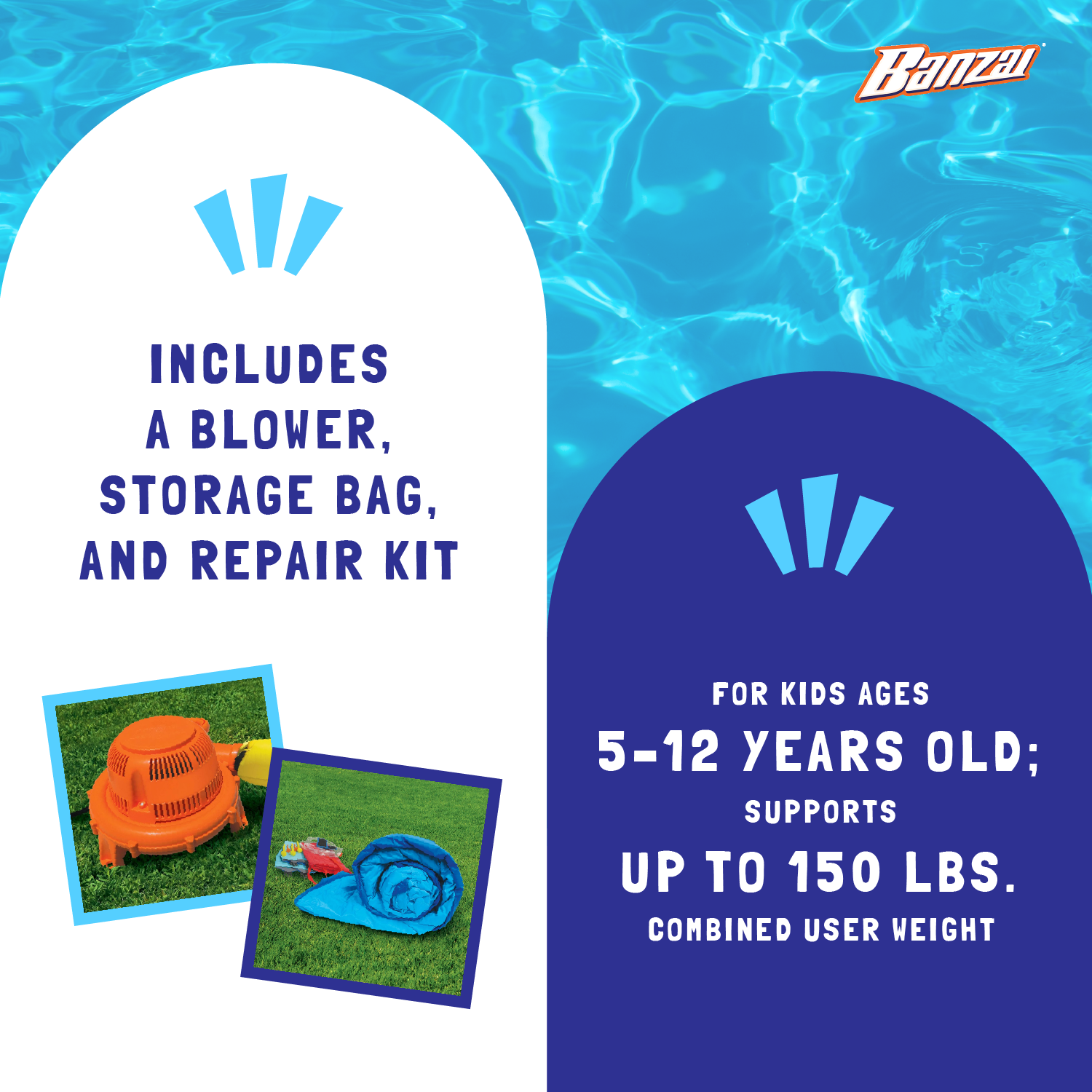 Inflate the backyard toy in less than 3 minutes with the included blower and store with ease using the storage bag and perform minor touch-ups with the included repair kit.
