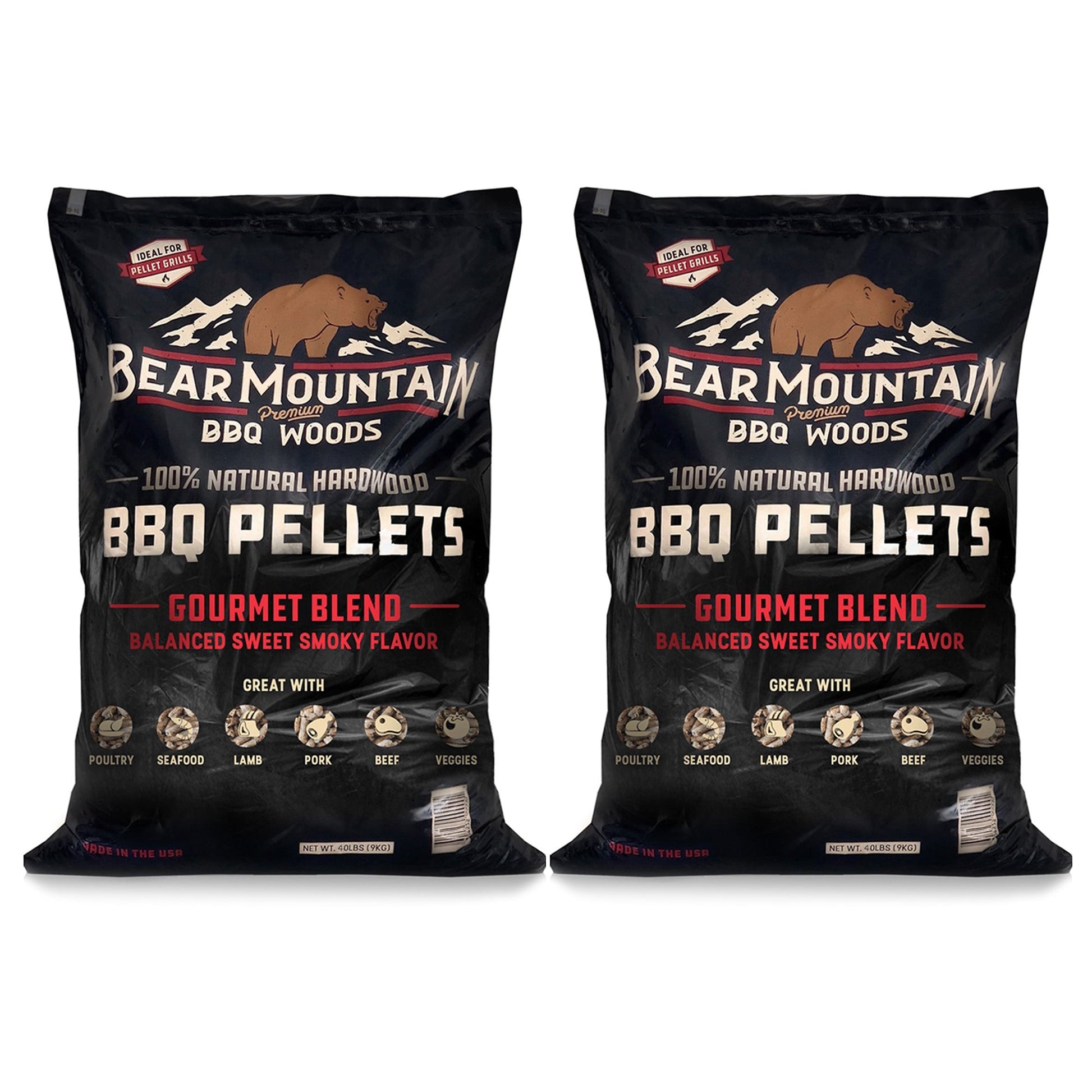Kick your grilling skills up a notch with Bear Mountain BBQ Premium All-Natural Hardwood Gourmet Blend BBQ Smoker Pellets 2 Pack, a premium combo to your pellet grill needs. If you're gearing up for a summer cookout or braving the cold to grill a generous rack of ribs, these pellets will add a well-balanced sweet and smoky flavor that's sure to impress.