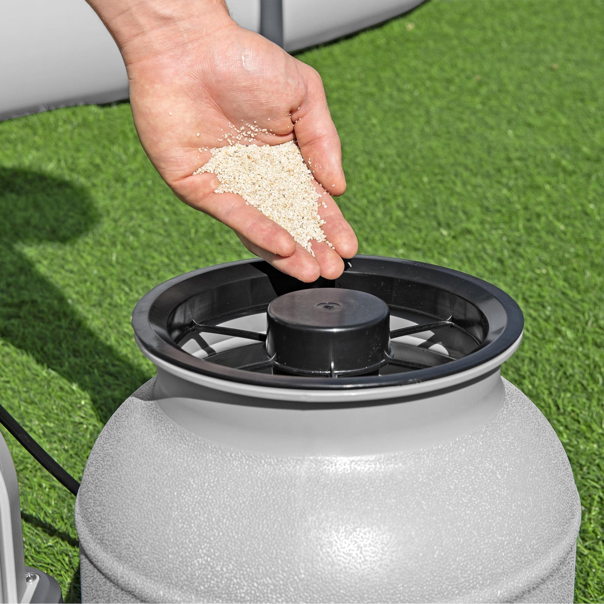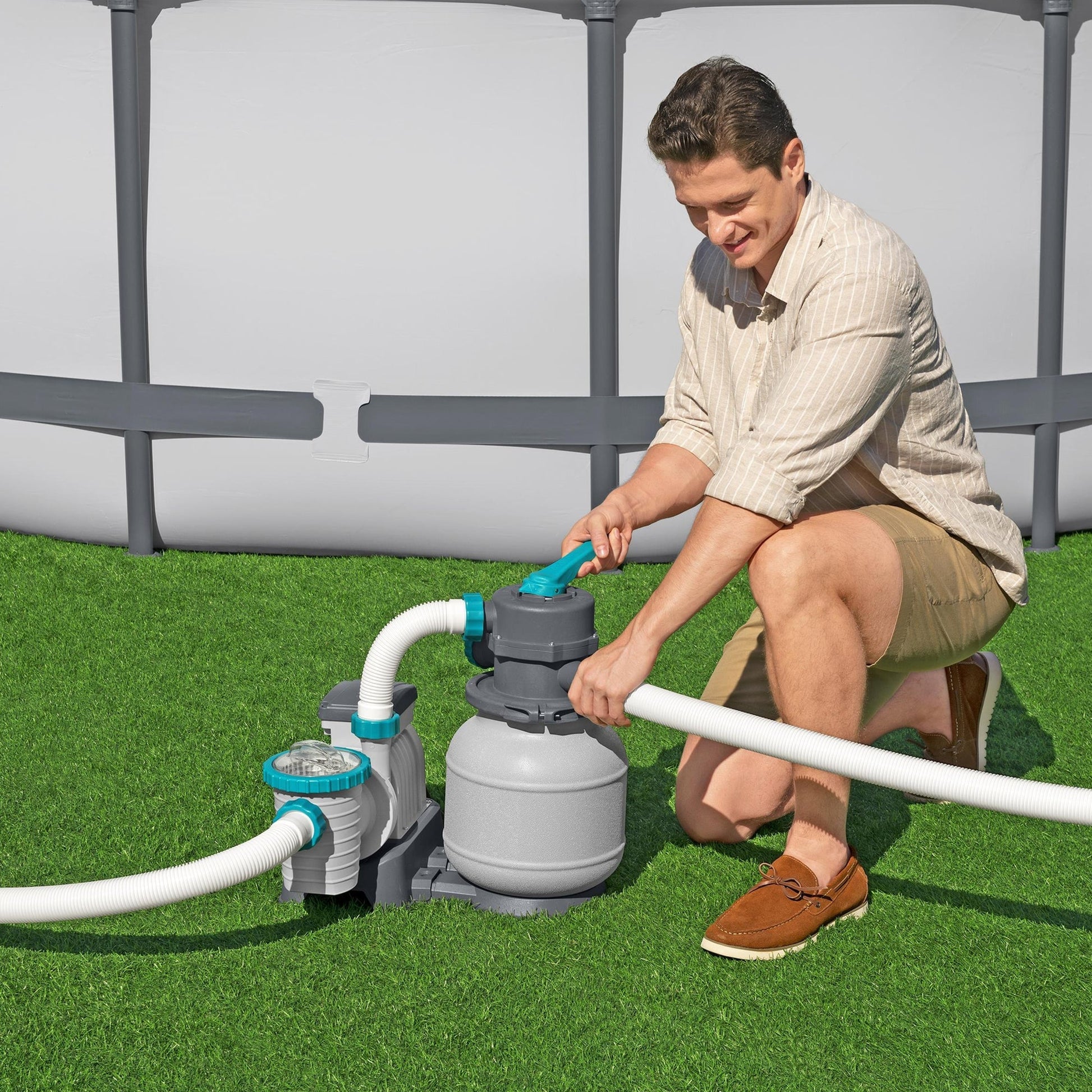 - Bestway Sand Filter Pump provides a high pump flow rate of 1,500 GPH, ensuring crystal-clear, clean water for your above-ground pool