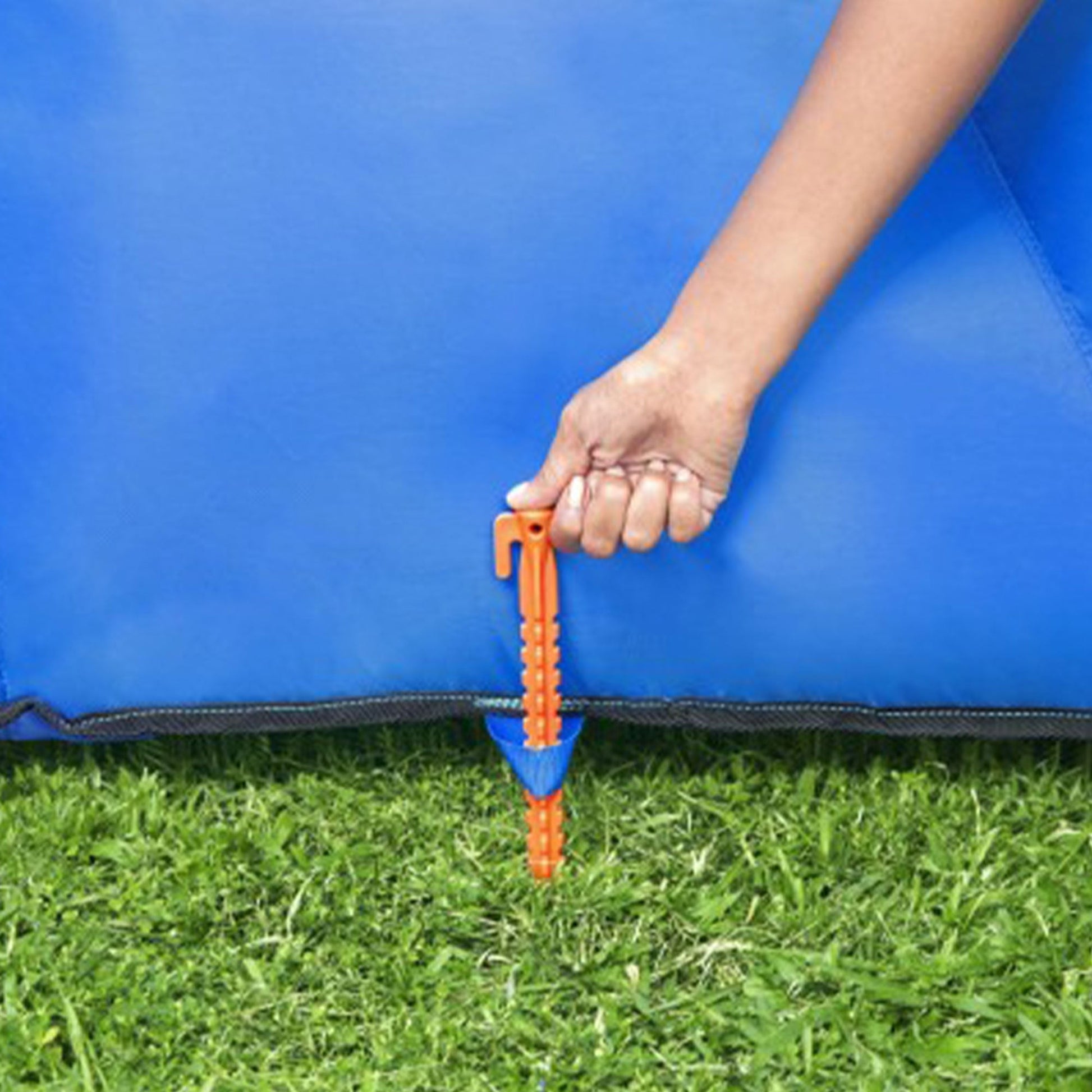 Made of durable double-stitched PVC materials, you can ensure that polyester fabric will not tear for season after season usage. Including 10 reliable ground stakes, a water spraying hose, 2 inflatable battle boppers, and a repair kit, you'll have everything you need for an efficient setup, while the convenient storage bag provides a safe place to store this park during the off-season.