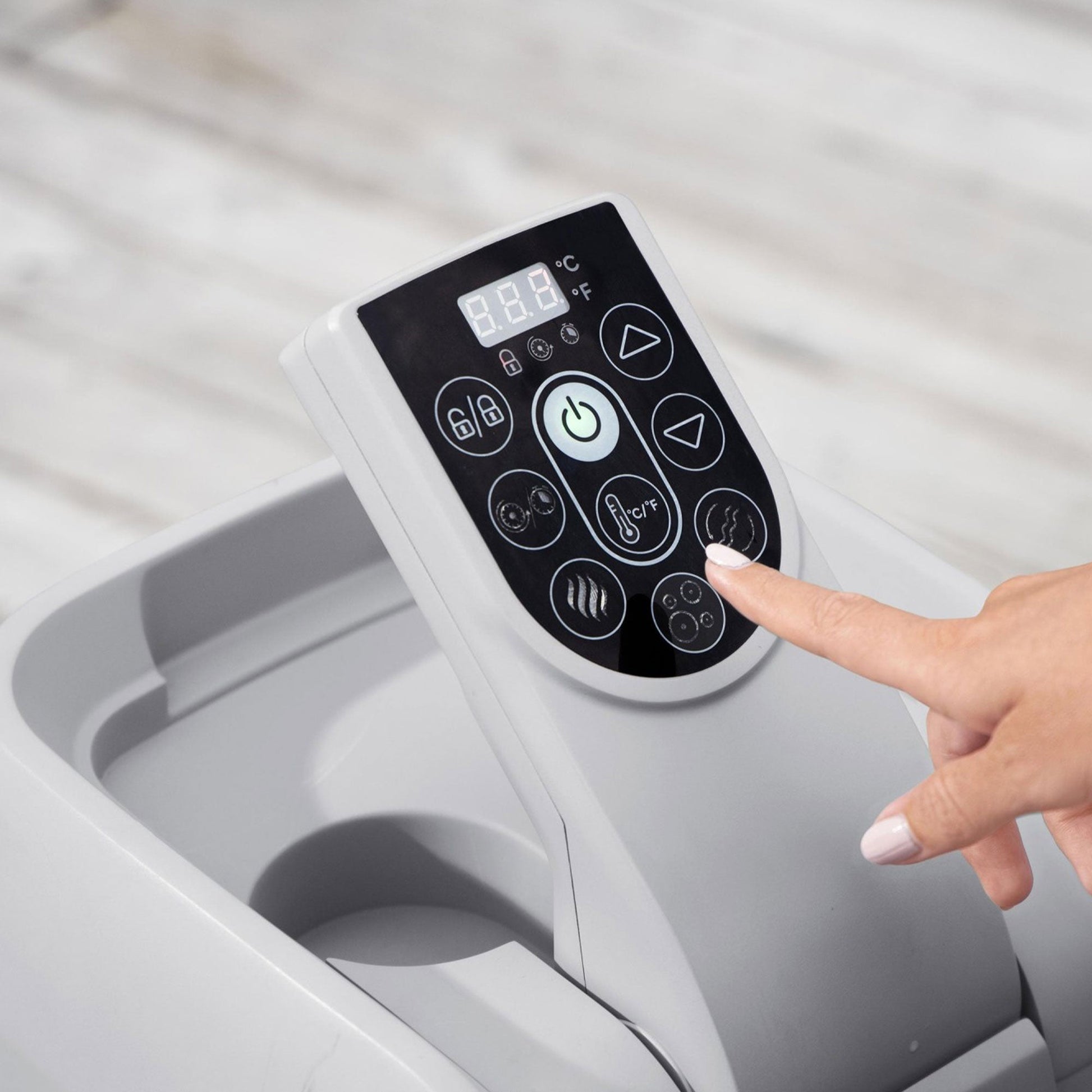 - Equipped with a pump that quickly inflates the spa, heats it up, runs filtration, and controls the massage system