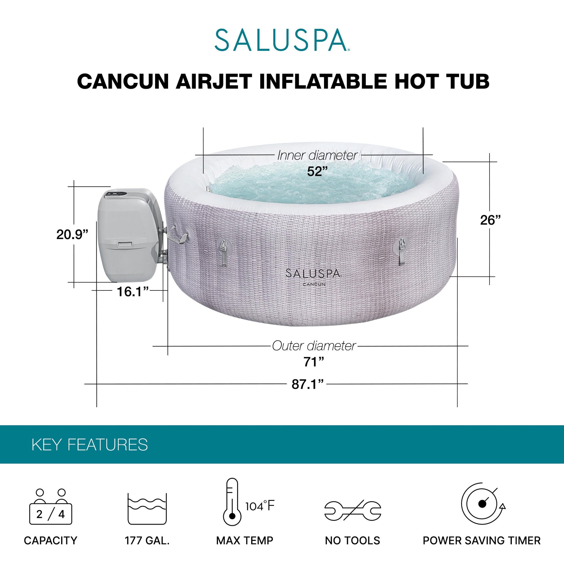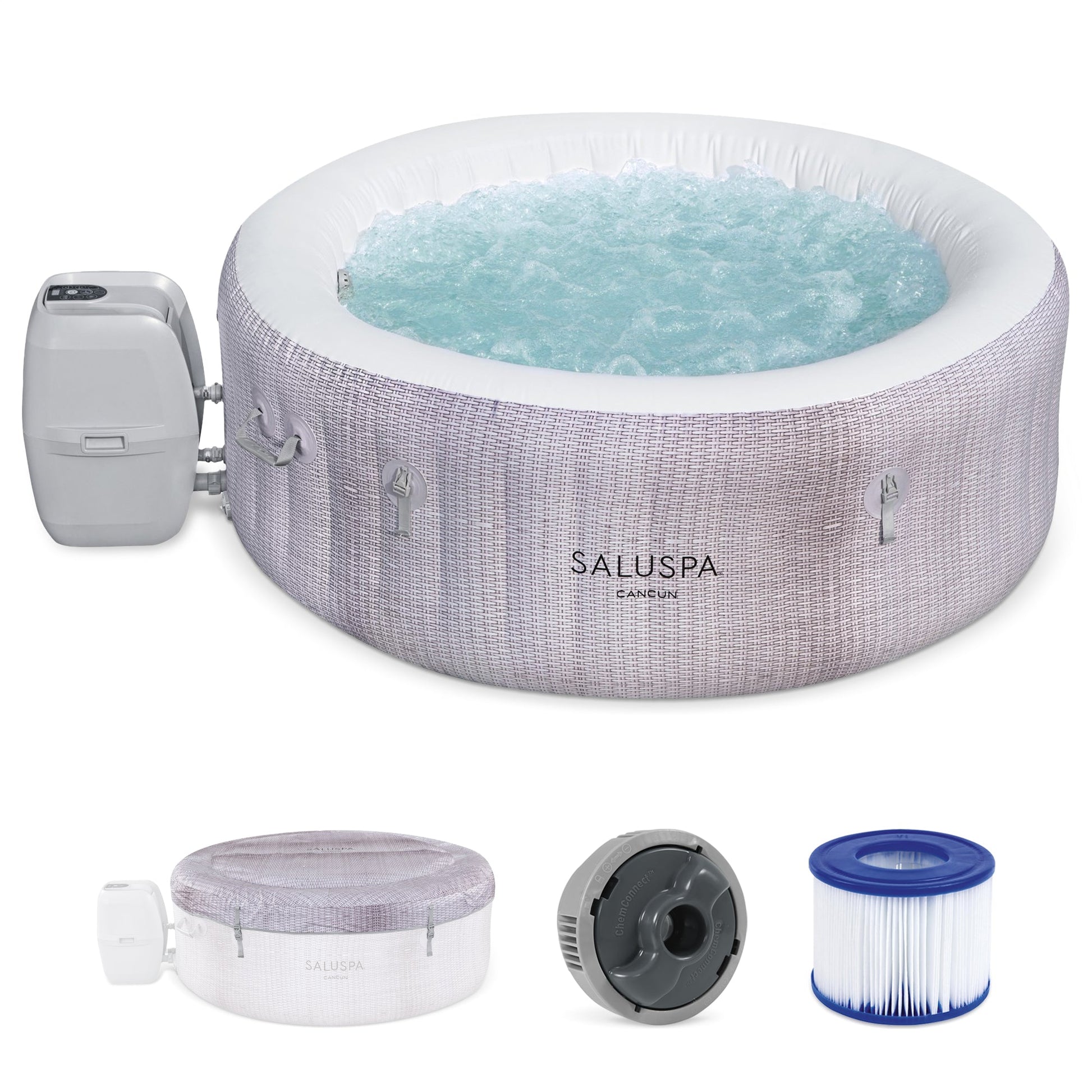 After a long day, there's nothing more relaxing than sinking into warm, bubbling water right in your own backyard. The spacious, round design of the Cancun SaluSpa Hot Tub provides a soothing massage experience for up to 4 people. Simply attach the pump and watch as it inflates.