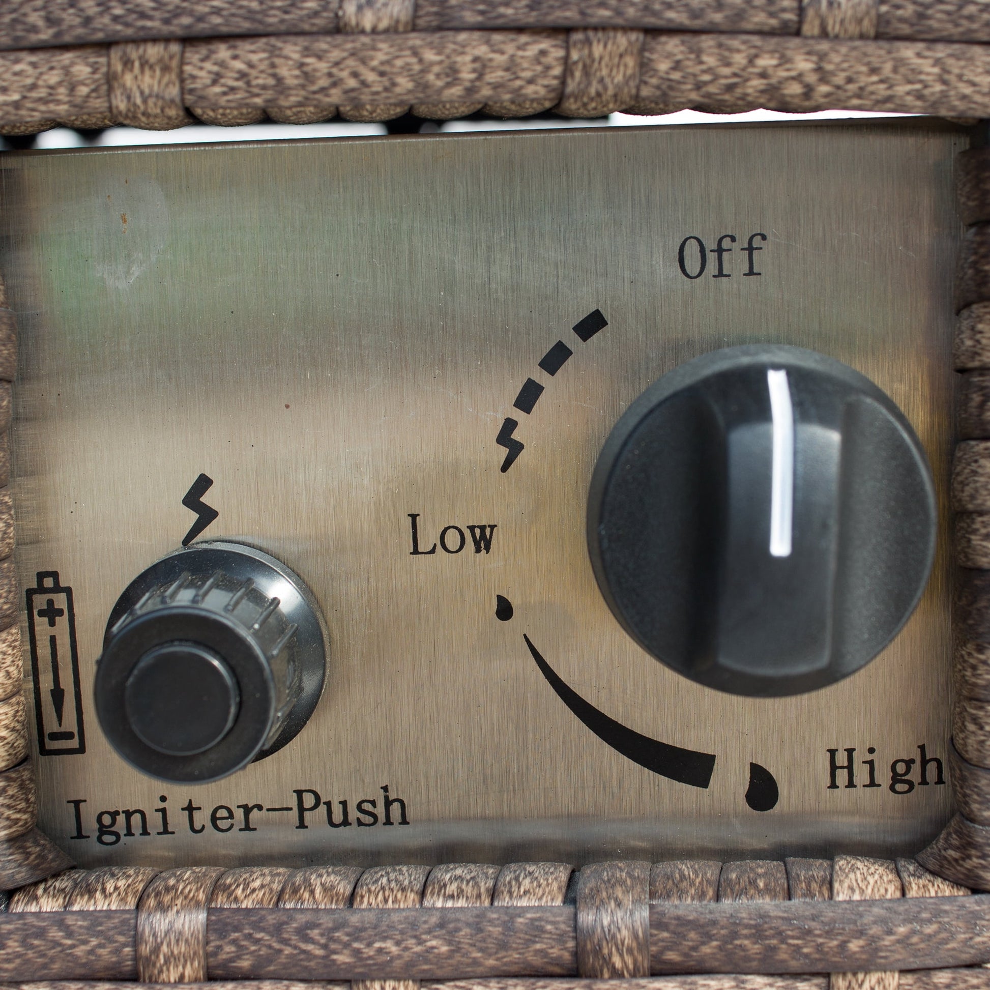 Gather with friends and enjoy the warmth and ambiance of the Better Homes & Gardens 50 inch Brookbury Gas Burning Fire Pit Table. The fire pit includes a metal lid to transform the fire pit into a traditional table when not in use. The wicker base can pair with chairs, loveseats, and other pieces in your garden to create your own custom seating arrangement. The Better Homes & Gardens 50 inch Brookbury Gas Burning Fire Pit Table is an inviting, long-lasting addition to your outdoor living areas.