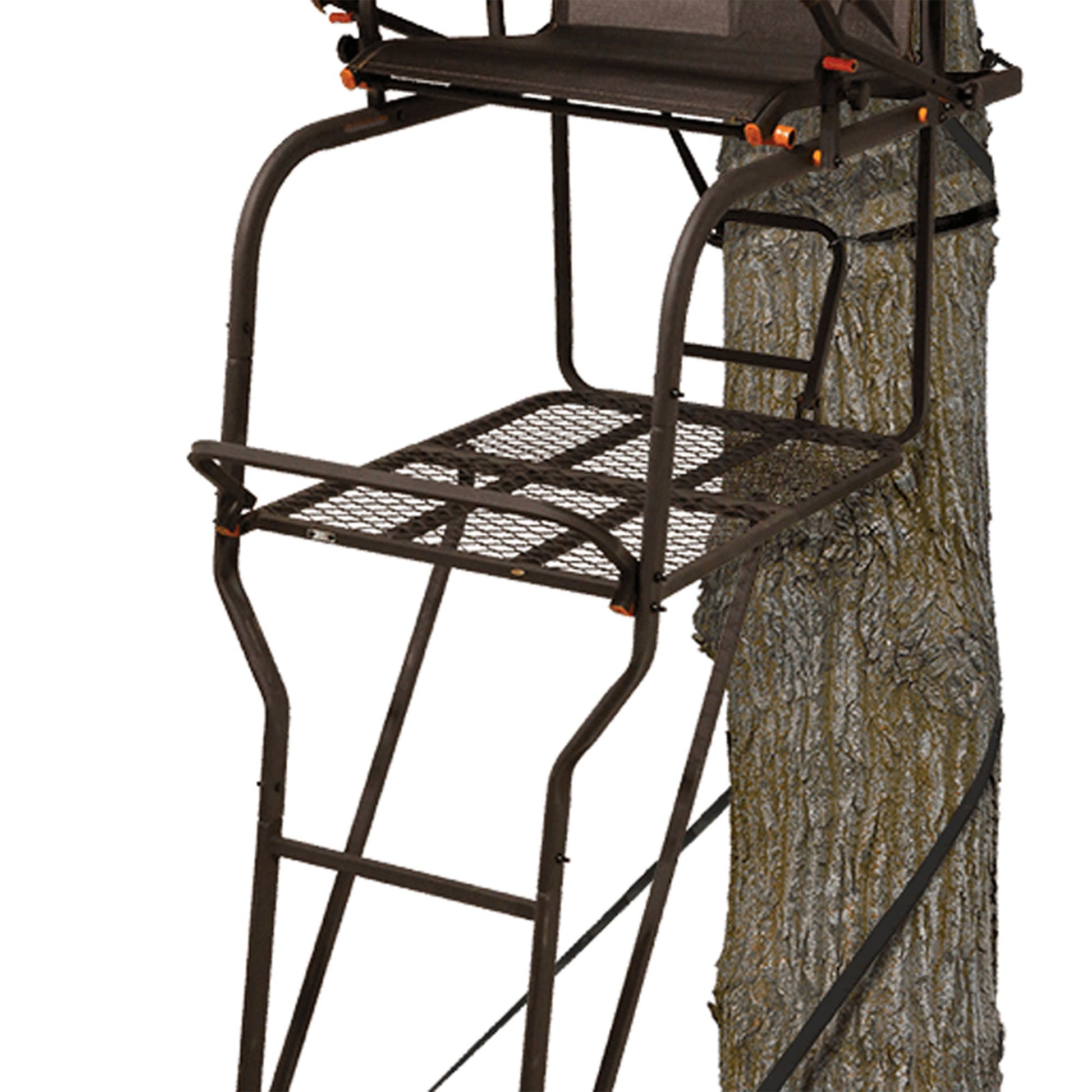 Comfort and safety are important when you're hanging out in a tree stand. Hunt deer and other big game safely from these 1-person ladder trees stand thanks to the included fully-body fall-arrest system safety harness. The extra wide 23- by 18-inch Flex-Tek seat contours to your legs and back for support and comfort, so you'll never get stiff while you wait. Adjust the padded shooting rail to suit your needs. The shooting rail sits at 18.5 feet off the ground, so you'll be far above any animals below. If you want to stand, simply slip the shooting rail back and flip the seat back. Each ladder tree stand has a large, 23.5-inch-wide by 29-inch-deep foot platform.