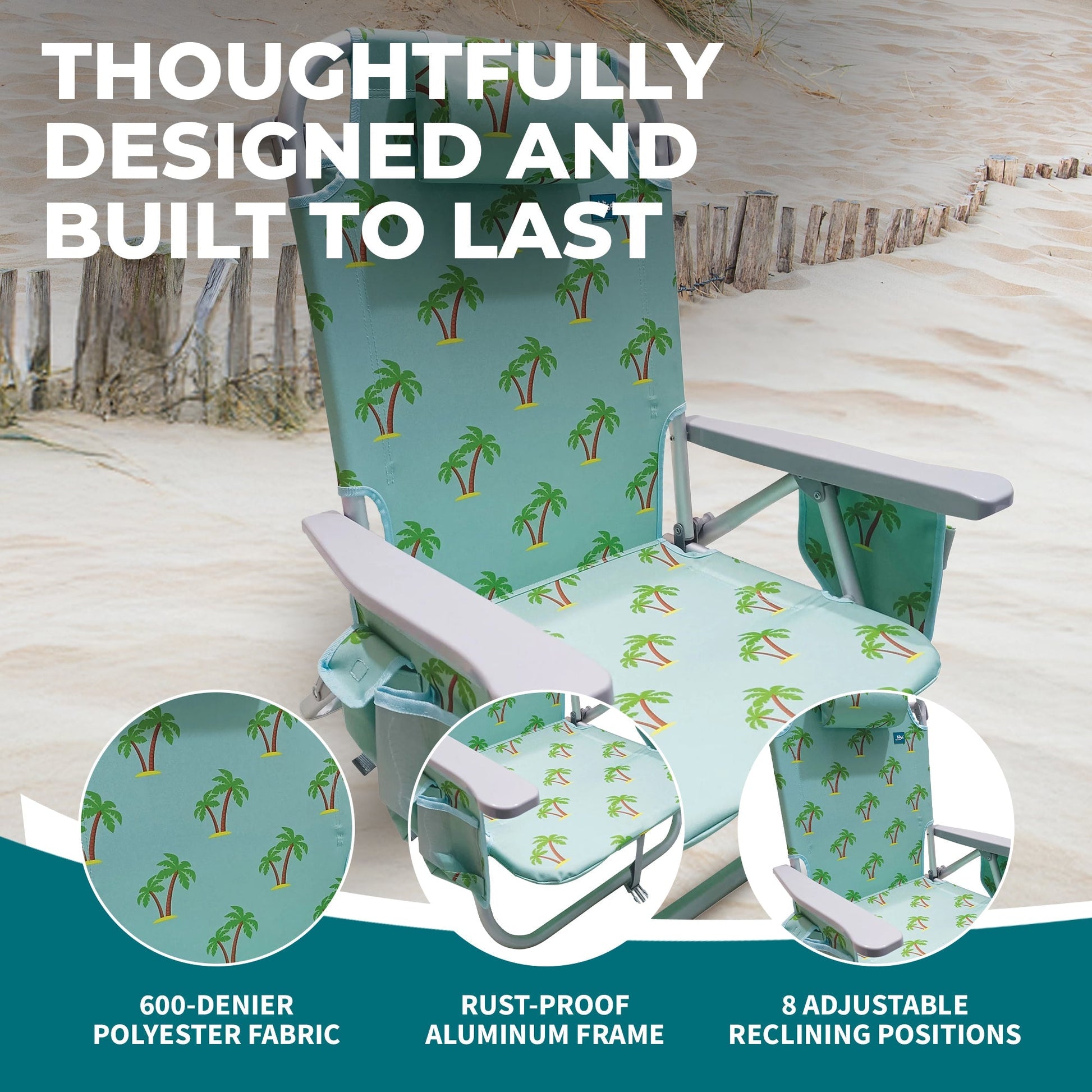 - Backpack beach chair adjusts to 8 reclining positions, including a fully reclined option for maximum comfort