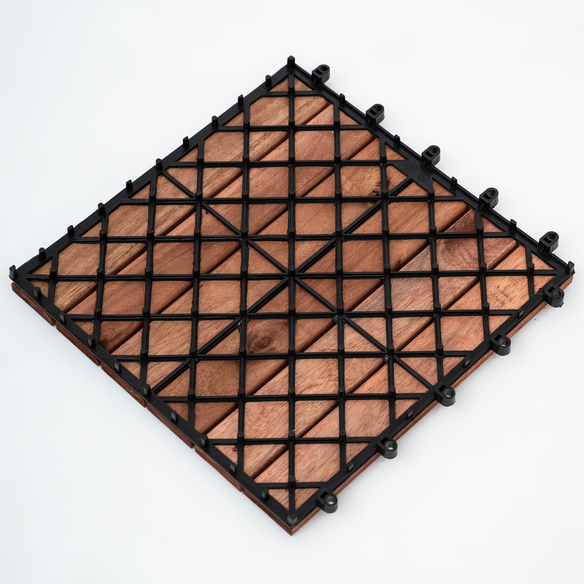 - Interlocking deck tiles are crafted from 100% natural acacia wood with a PPC base, ideal for outdoor patios, walkways, or balconies