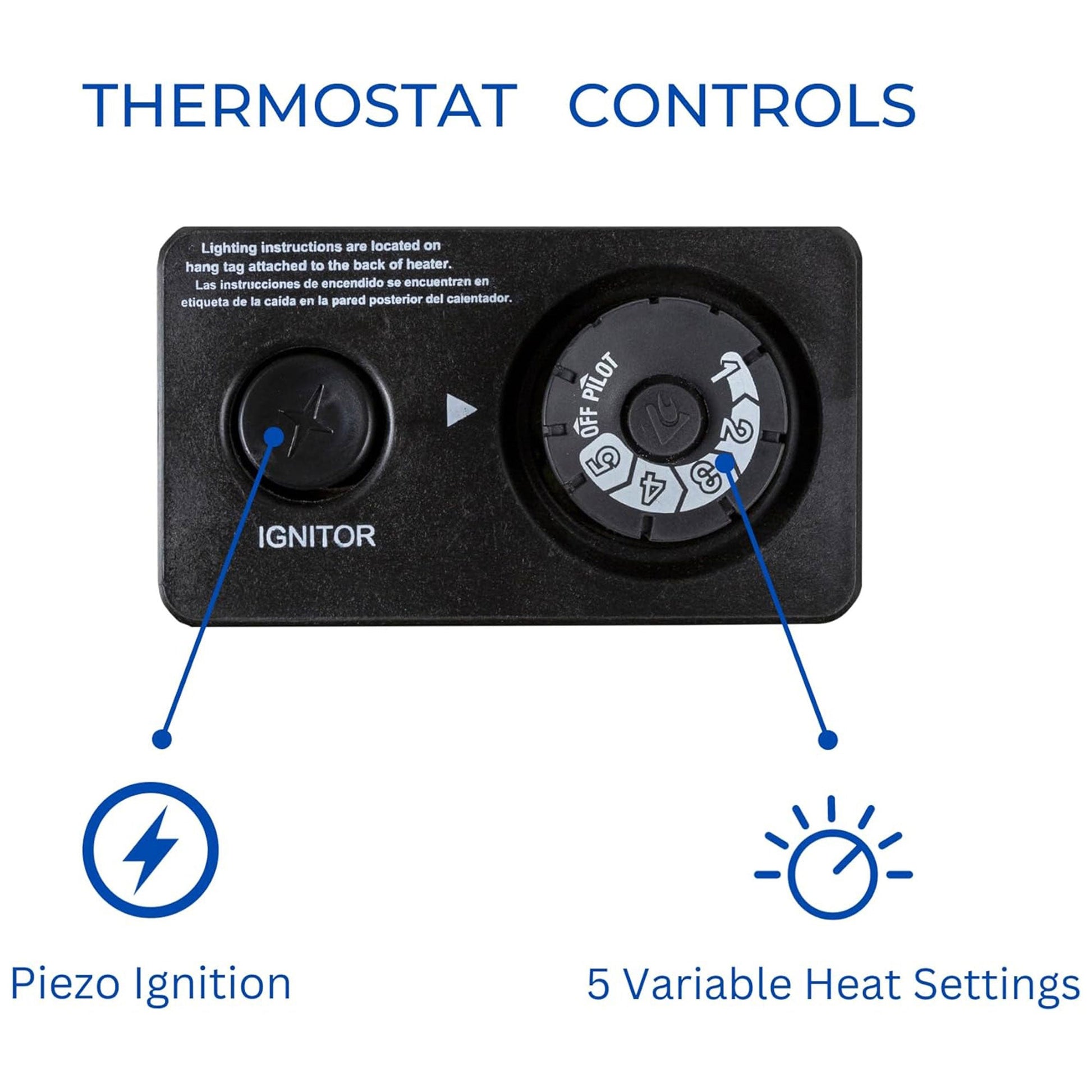- Built-in thermostat control cycles heater on and off for maintaining ideal temperatures, or manual mode allows for customizable heat settings